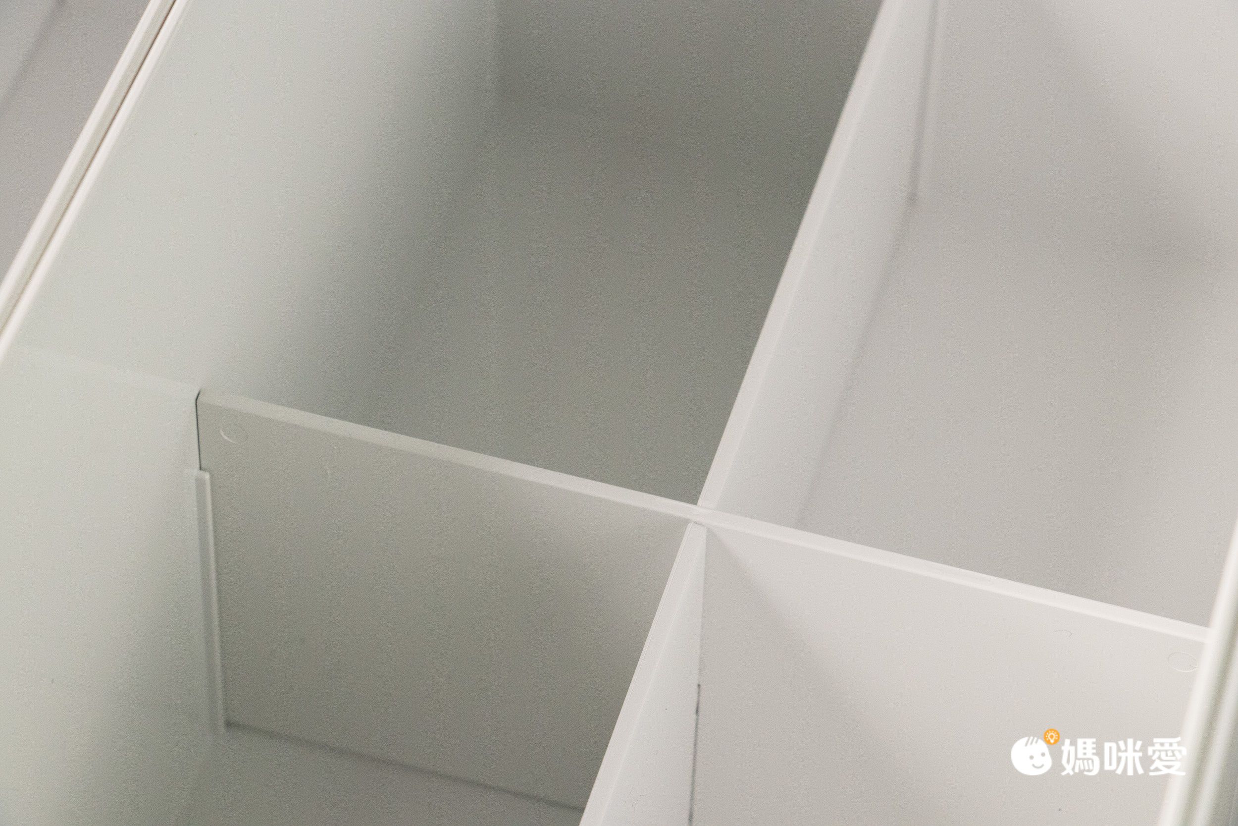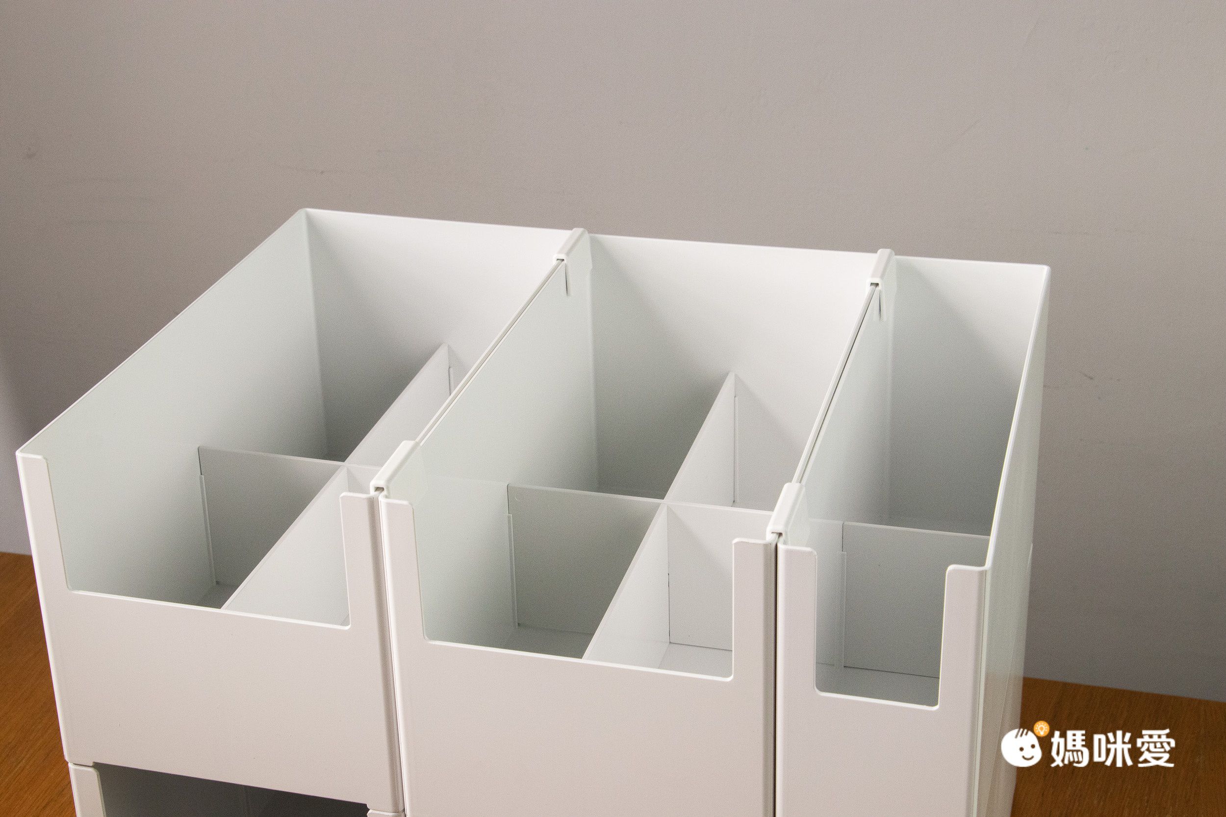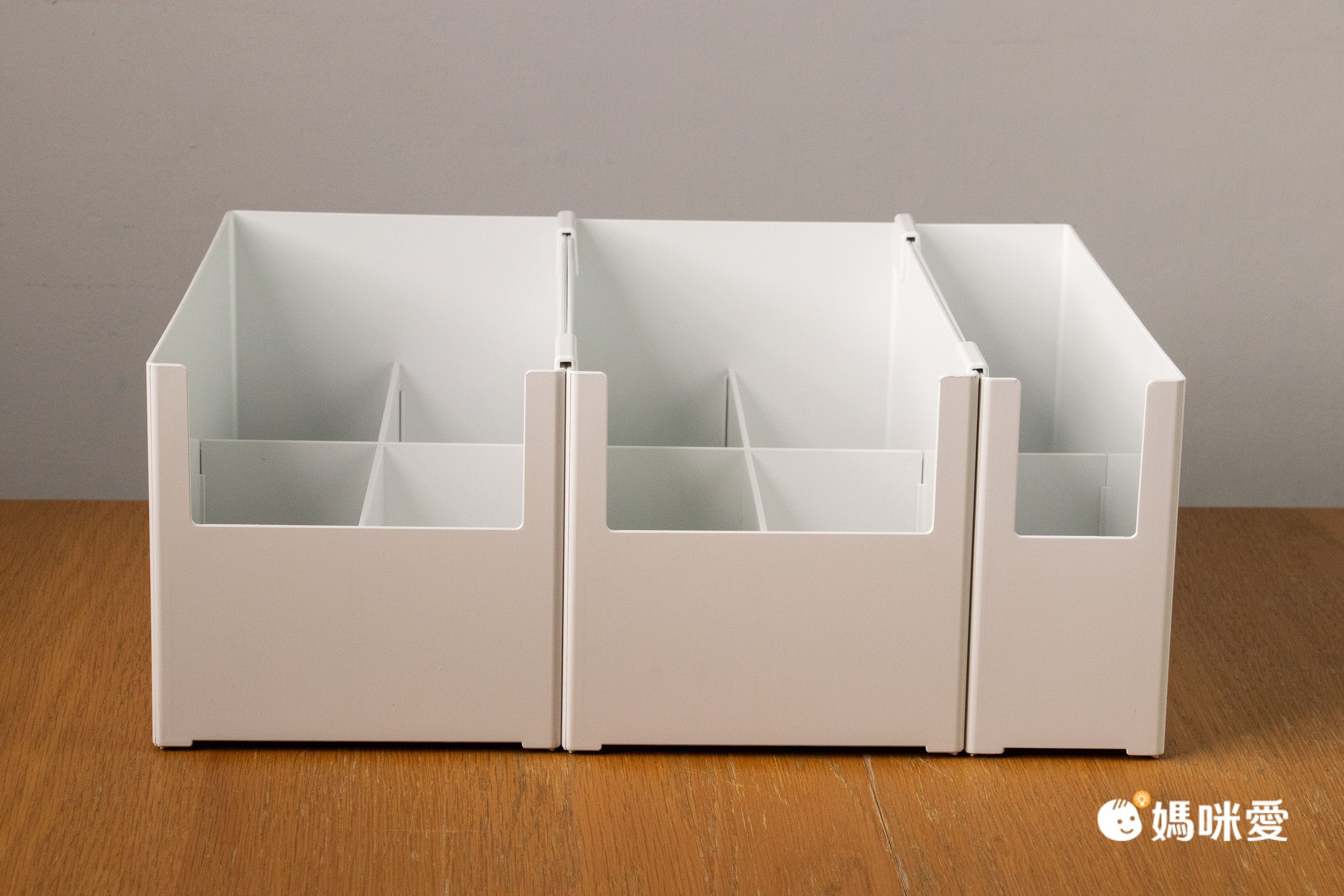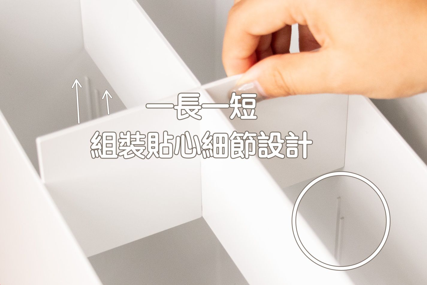 首先!市面上的收納盒大部分都是一體成型,可拆卸式的做工過程相對複雜,理理收納盒不但設計了溝槽,還貼心設計一長一短,只要順著長邊就輕鬆將隔板放入!這個細節在使用上真的讓編媽覺得太~貼~心~了~