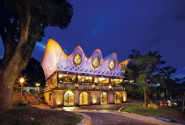 園區內還有一棟非常有異國風情的波浪造型建築物-「真滿意餐廳」,是魚池鄉的老字號餐廳,房客的晚餐、早餐都在這裡用餐~