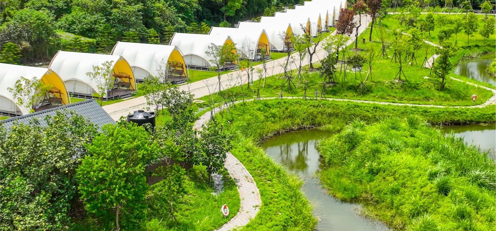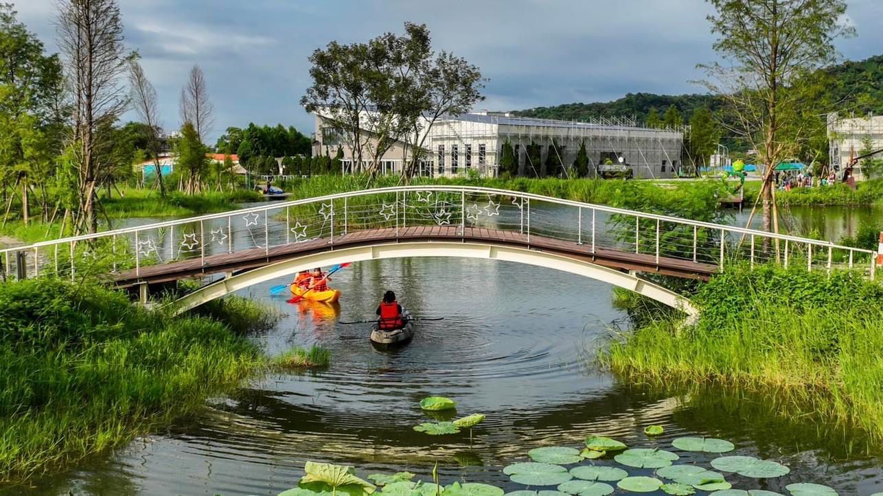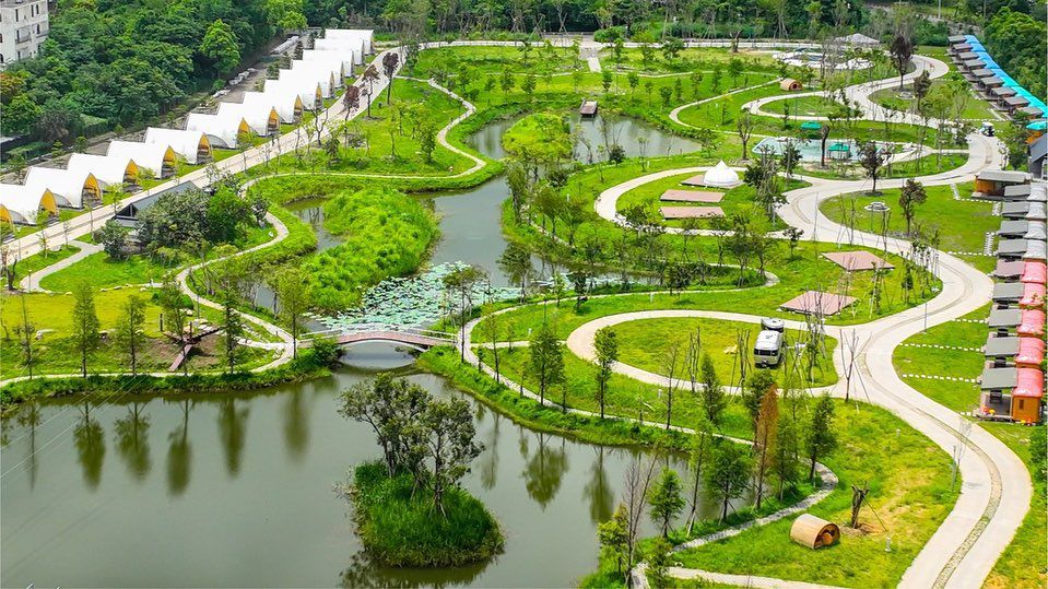 【桃禧漫遊渡假露營園區】佔地很廣,園區內精心規劃了不同的分區、中心有小湖,外圍有步道可以散步等等,也配有高爾夫球車隨時在園區內繞行,提供旅客們輕鬆抵達目的地的貼心服務!