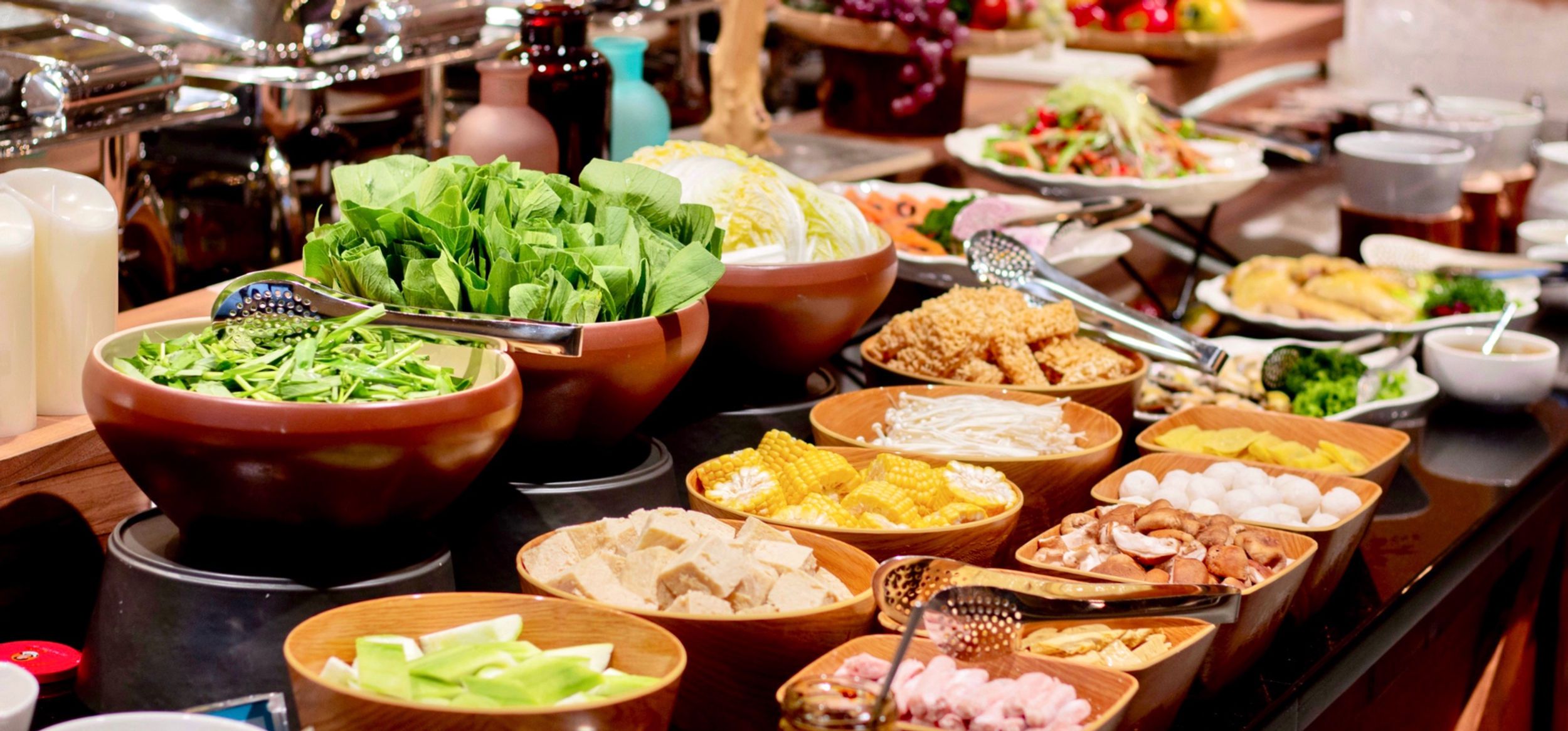除了自助吧,也還有一排的熱食可直接食用,以及擔仔麵可自己DIY煮來吃~!