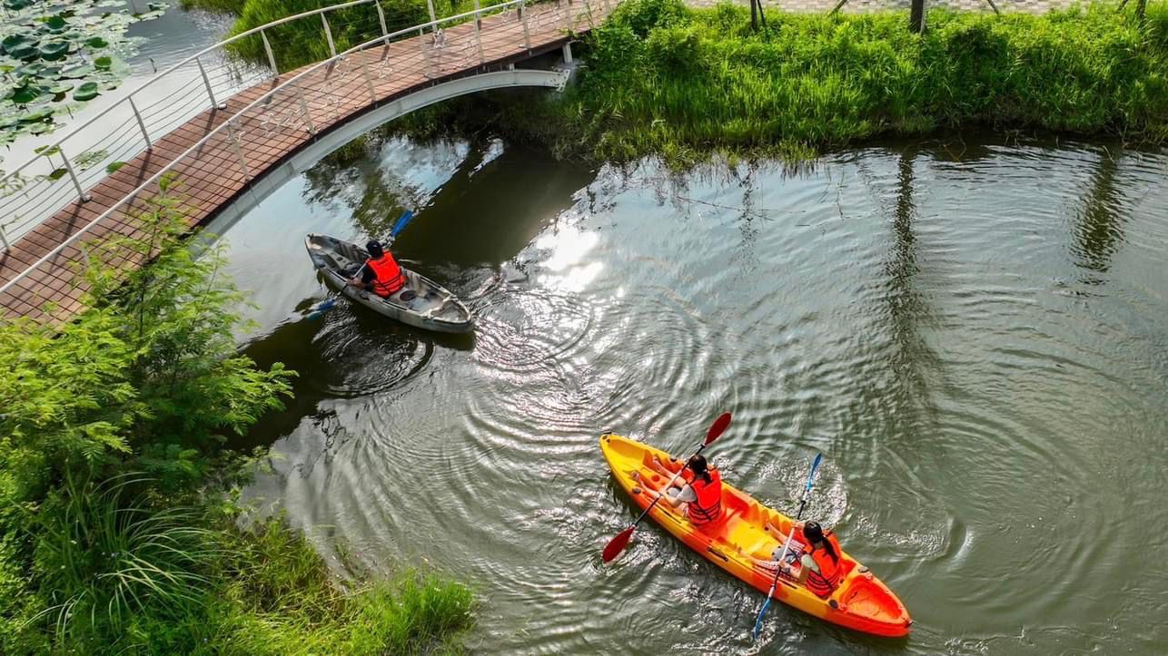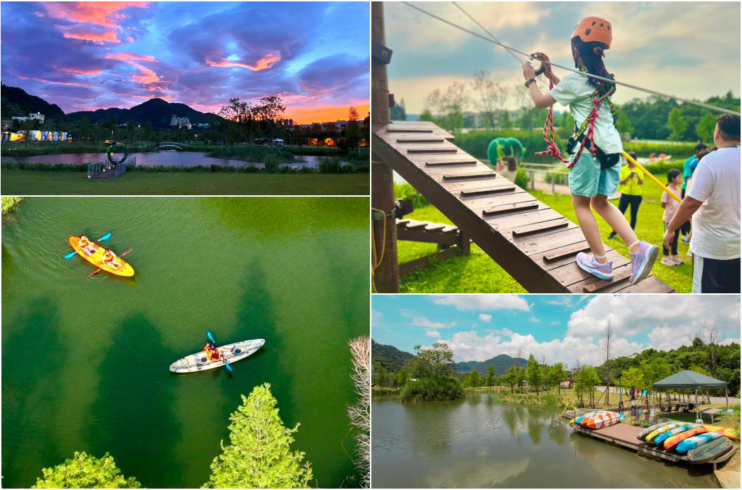【桃禧漫遊渡假露營園區】最有名的莫過於是眾多親子遊樂設施了,入住的旅客即可擇一選擇「獨木舟/面湖滑索/手作DIY」體驗(平日僅提供獨木舟體驗),不管大人小孩都能玩得很開心!創造美好回憶