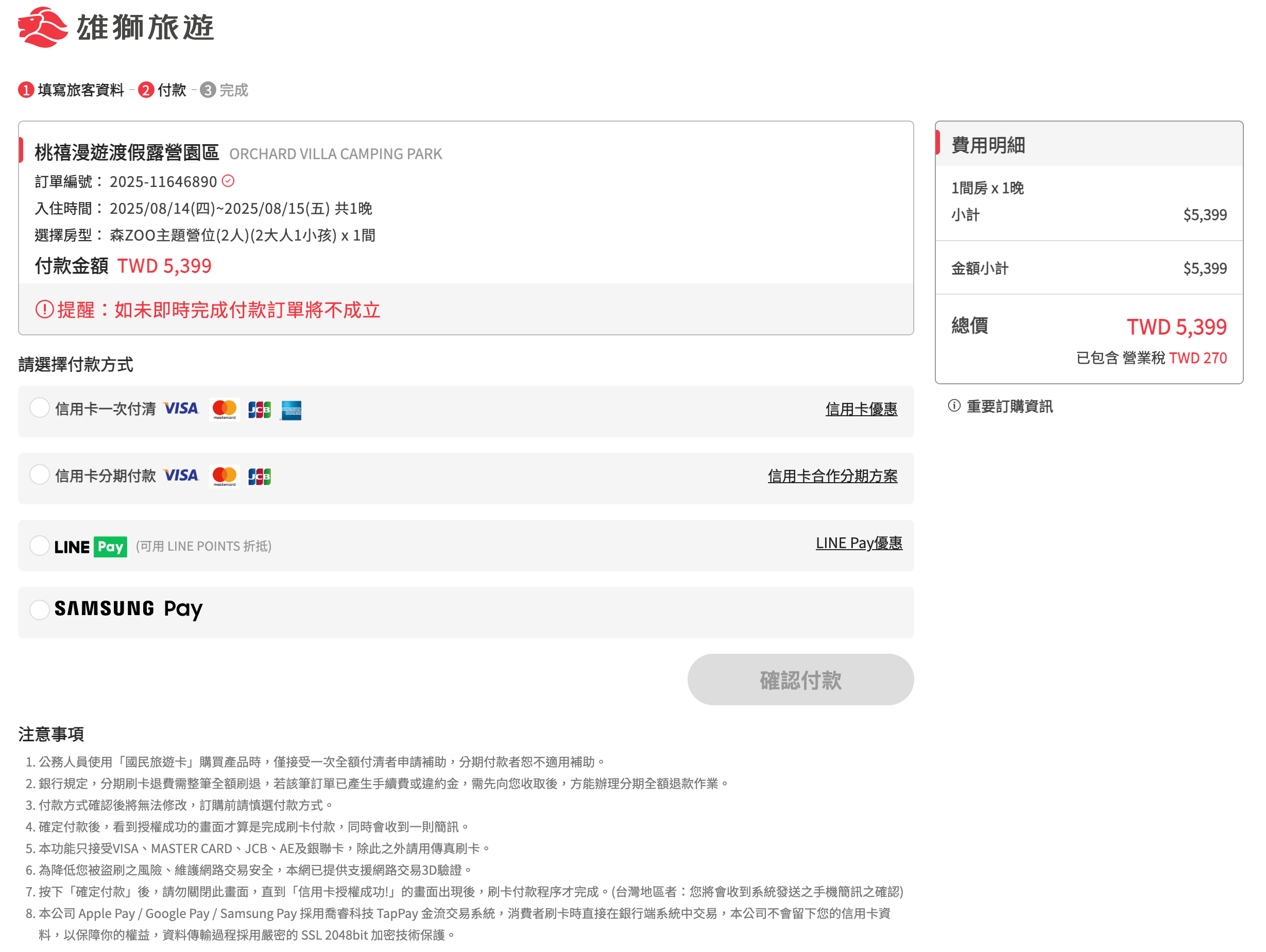 4. 可選擇下列幾種付款方式,付款後即完成訂房!