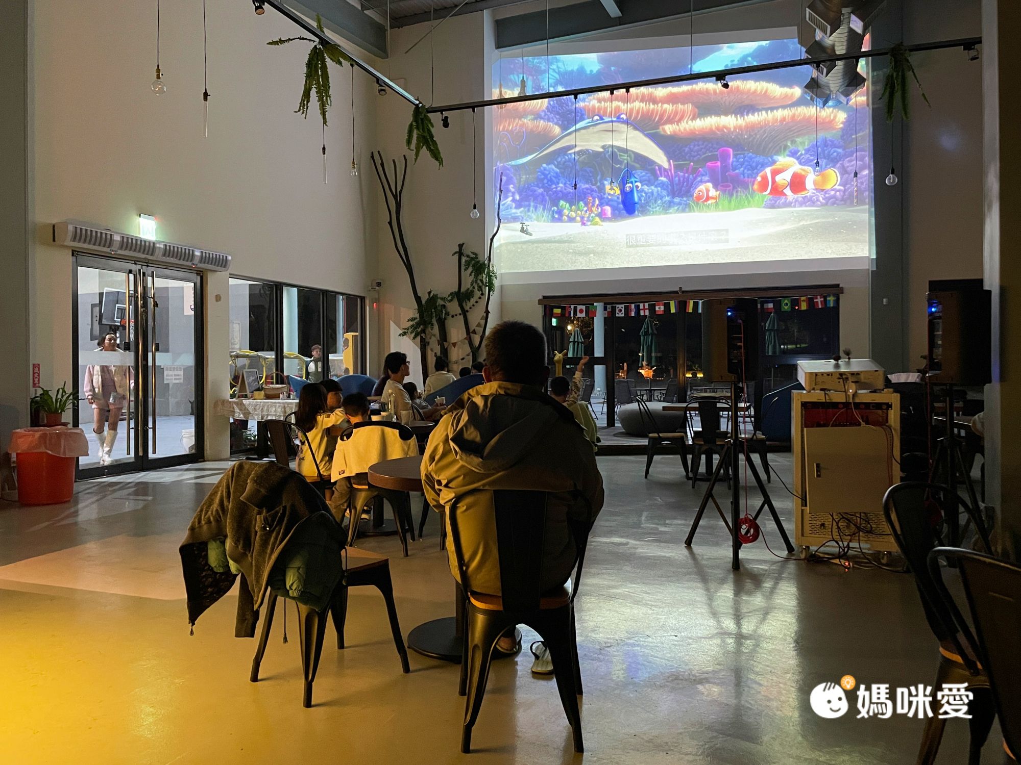 我們入住的當天 20:30 有星光電影院時間,同時現場有提供小宵夜甜品、爆米花、鹹食可吃,電影是在一個是內空間很寬敞的漫步咖啡廳中,投影播放。