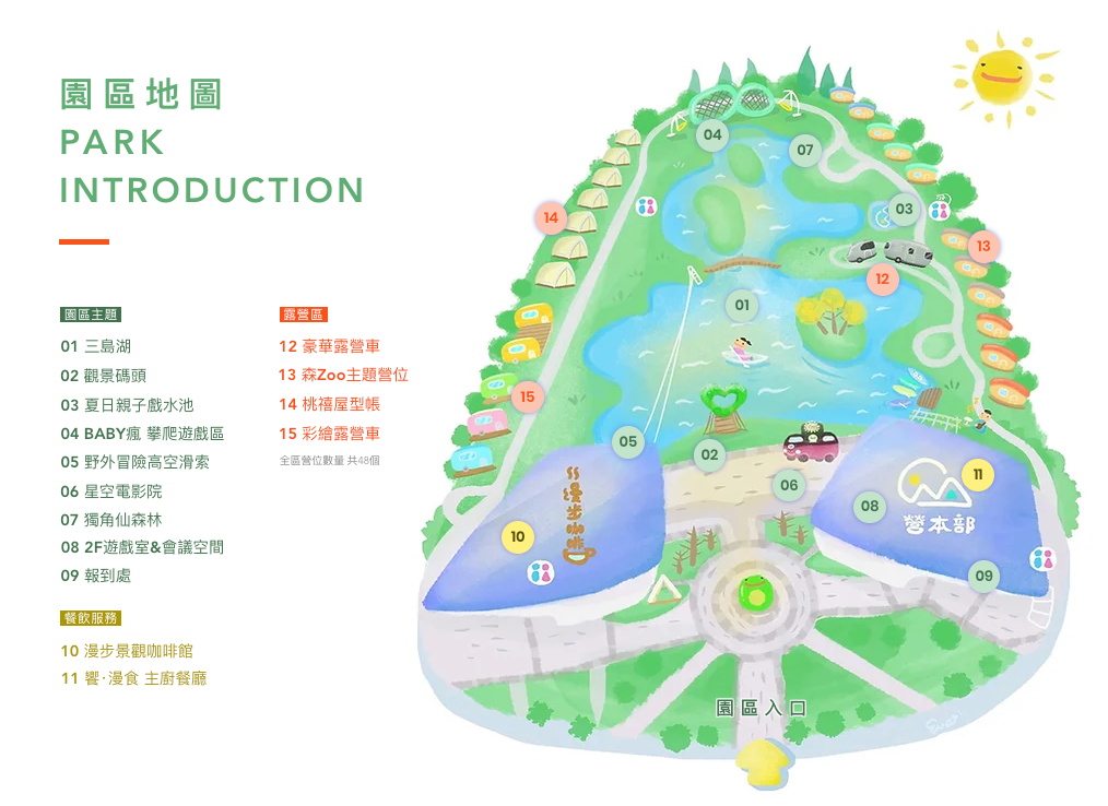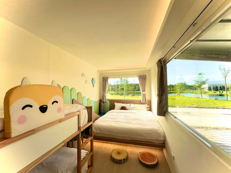 這次專案可入住的房型是「森Zoo主題營位」、「桃禧屋型帳」、「彩繪露營車」,每種房型都是圍著園區中央的湖各自獨立分區