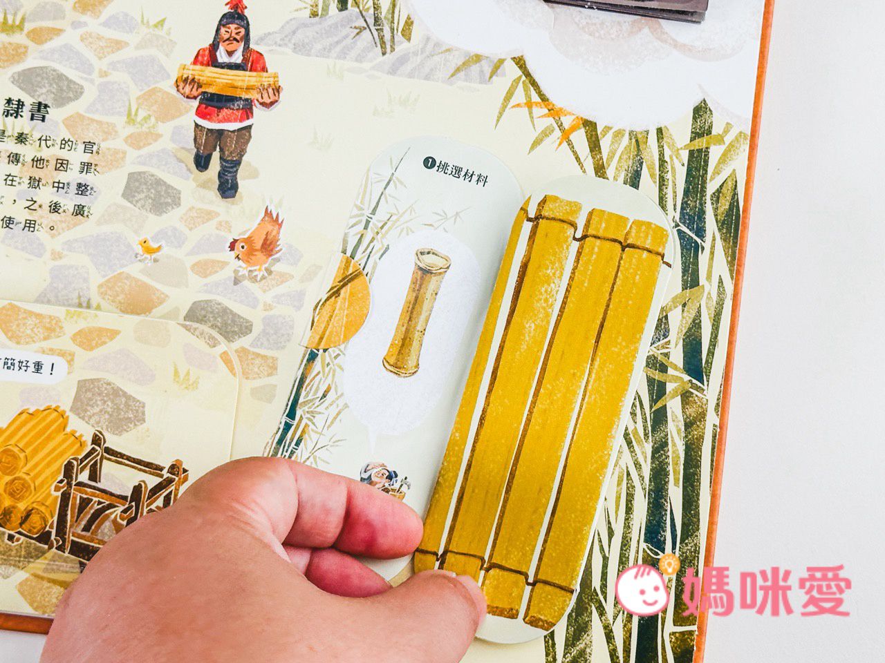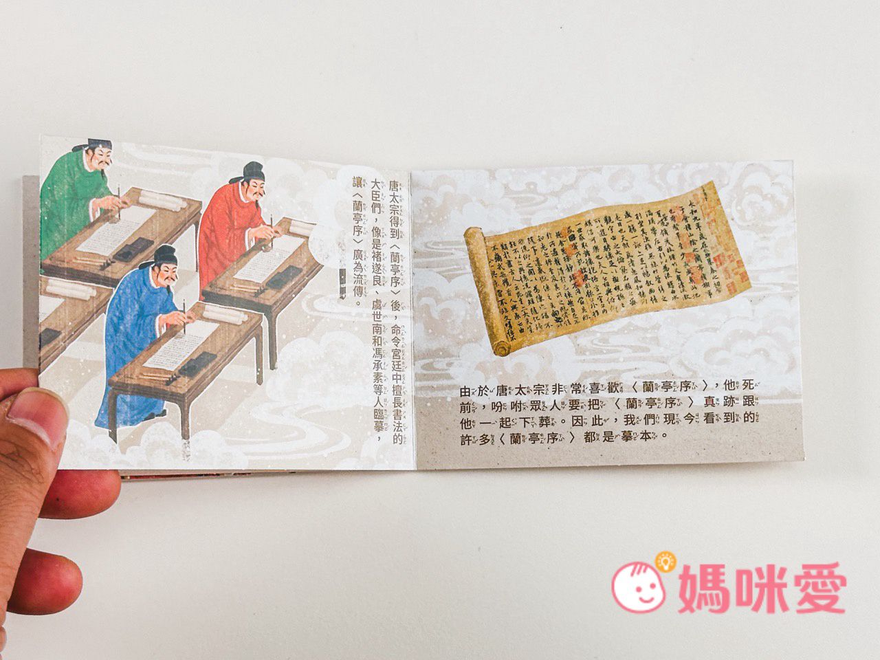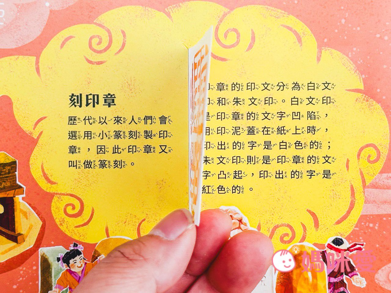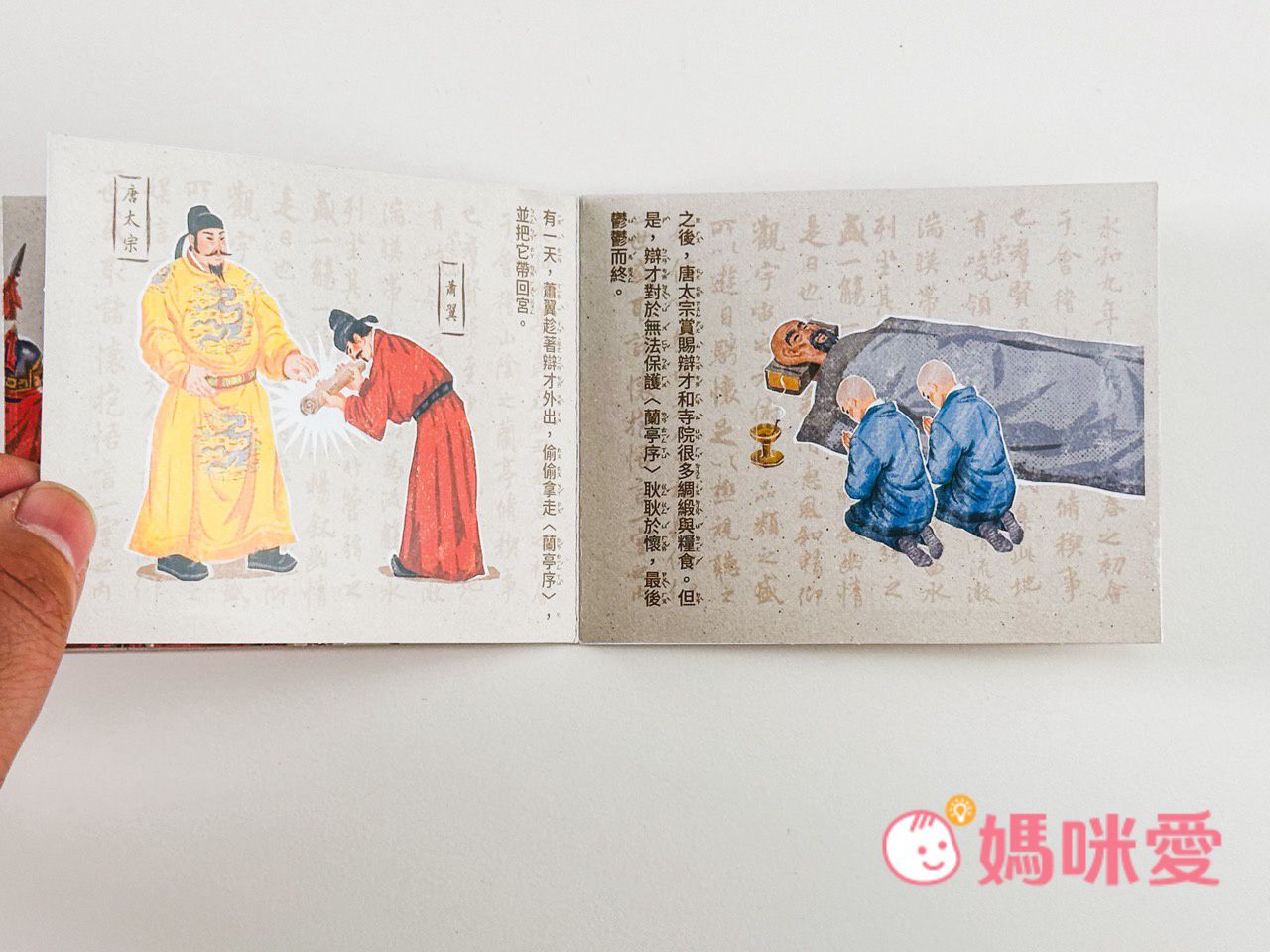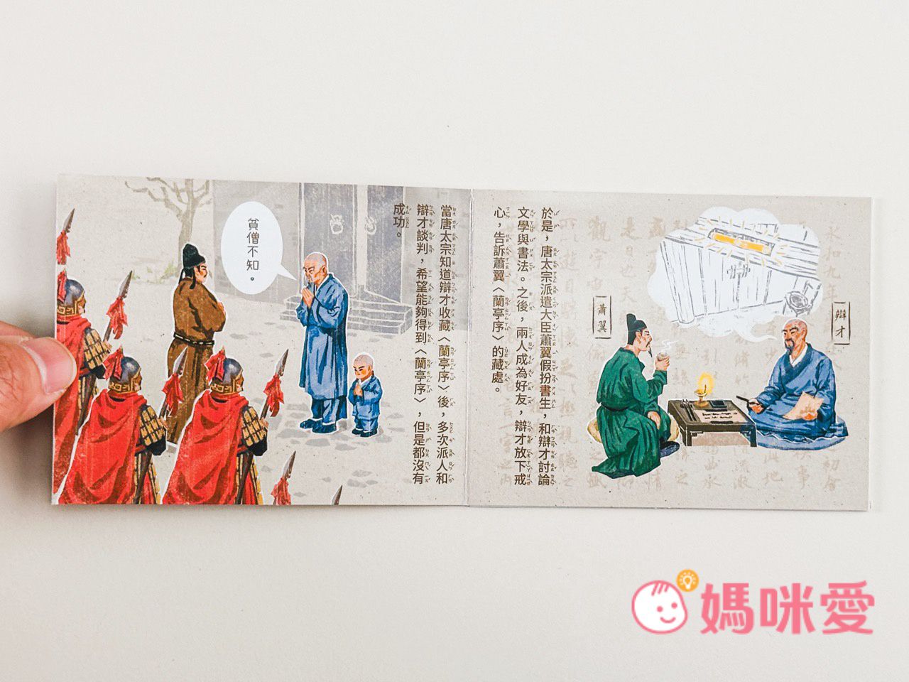 書中左下角還有一本小小的《文房四寶小知識》讓孩子能知道像是:毛筆的特性、墨條種類、硯臺、宣紙的製作過程等知識