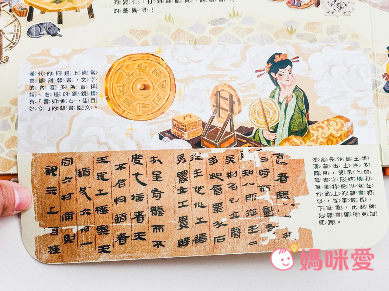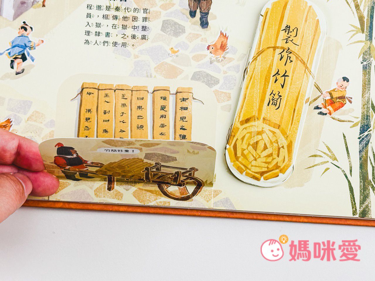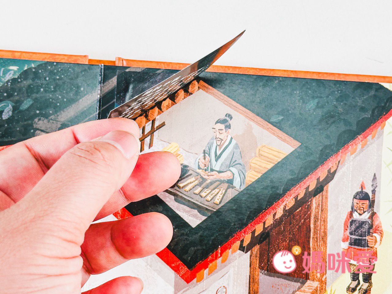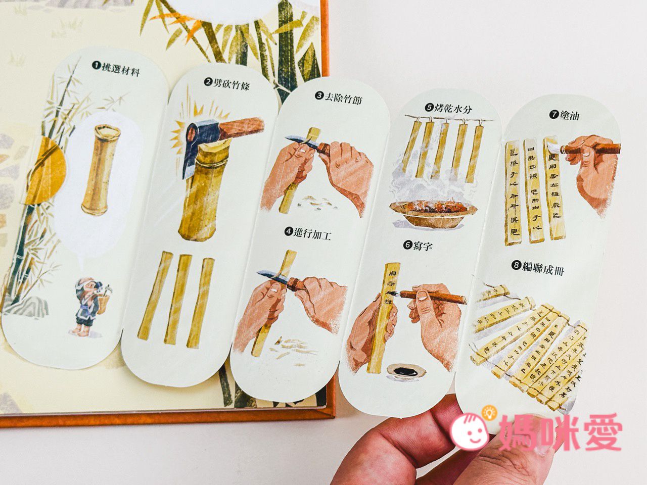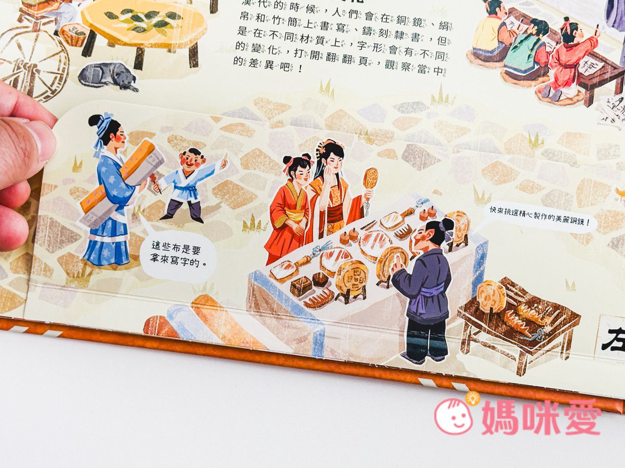書中左下角還有一本小小的《文房四寶小知識》讓孩子能知道像是:毛筆的特性、墨條種類、硯臺、宣紙的製作過程等知識