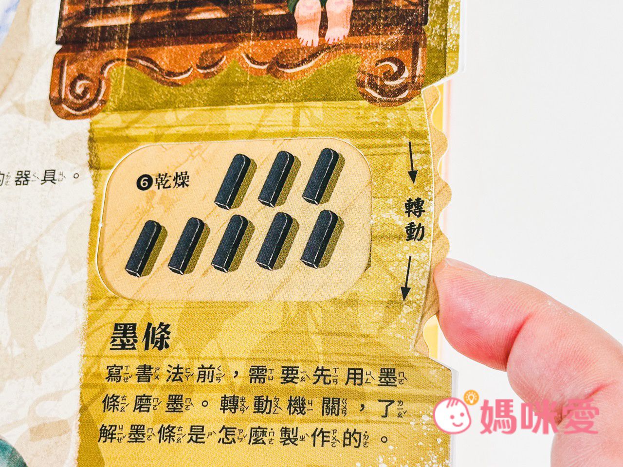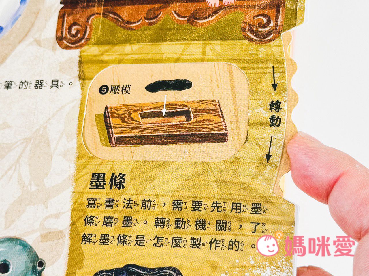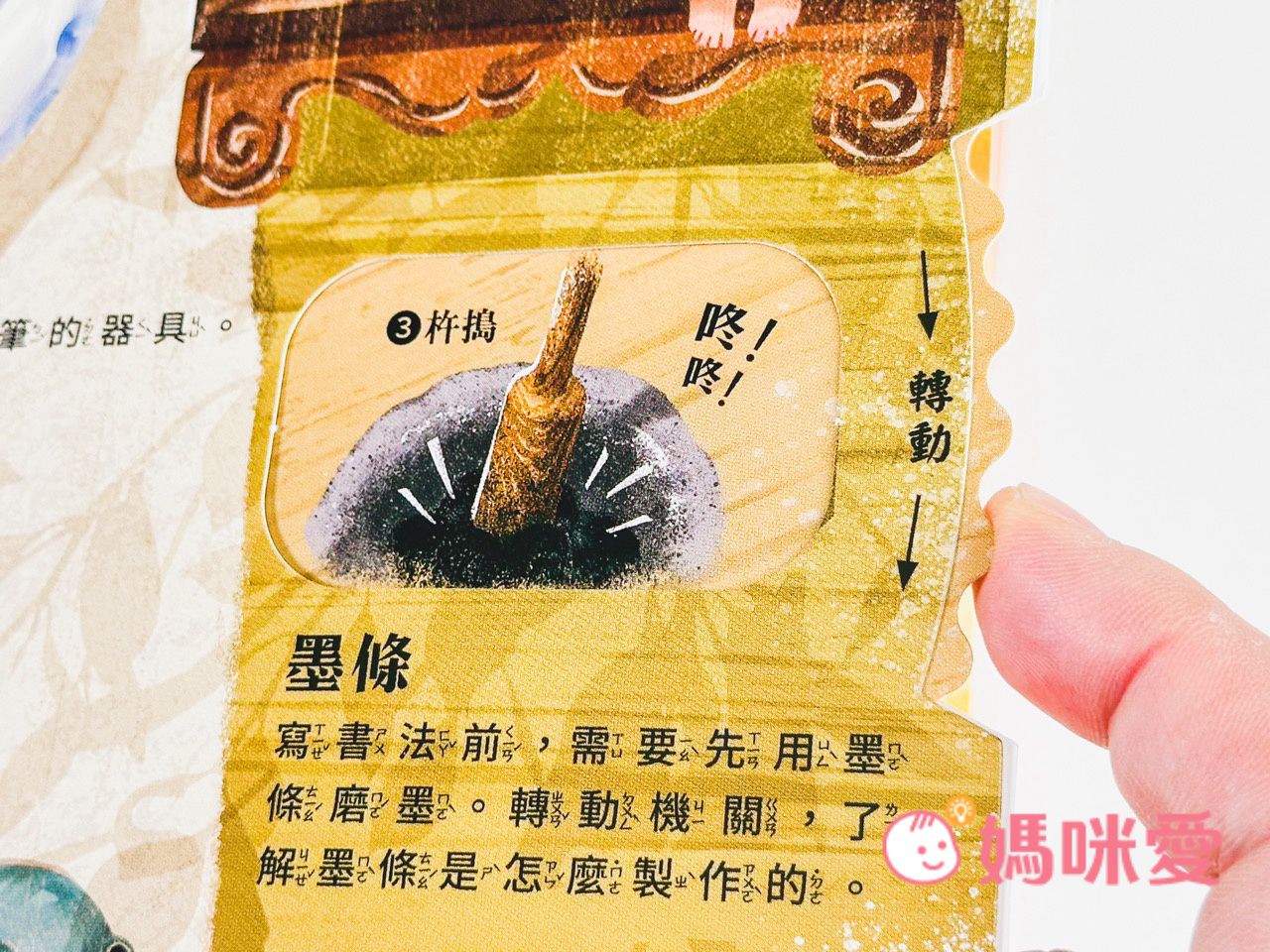 而轉動右側的機關還能了解『墨條製作的過程』~