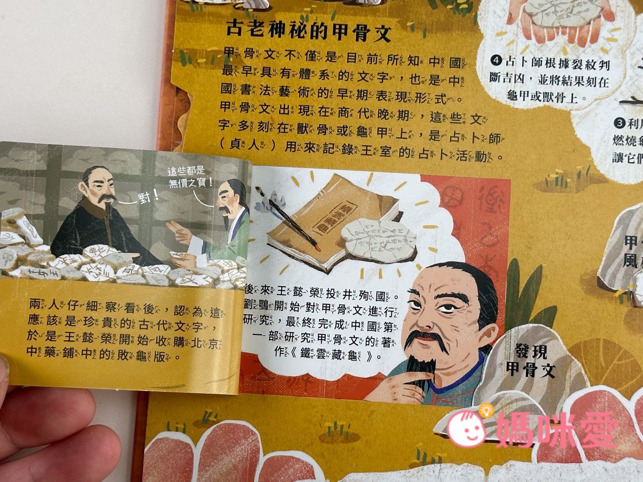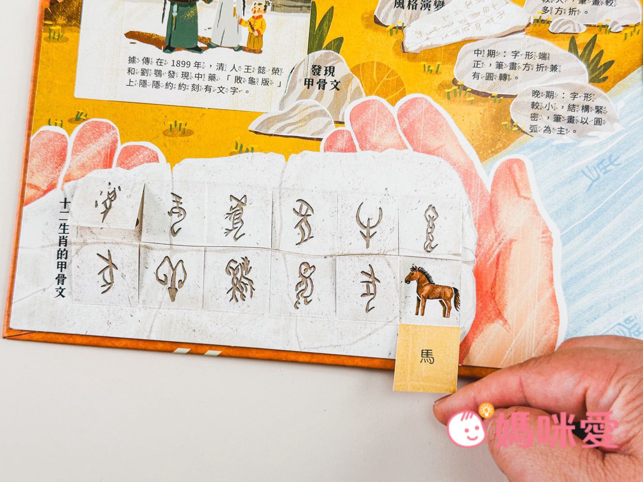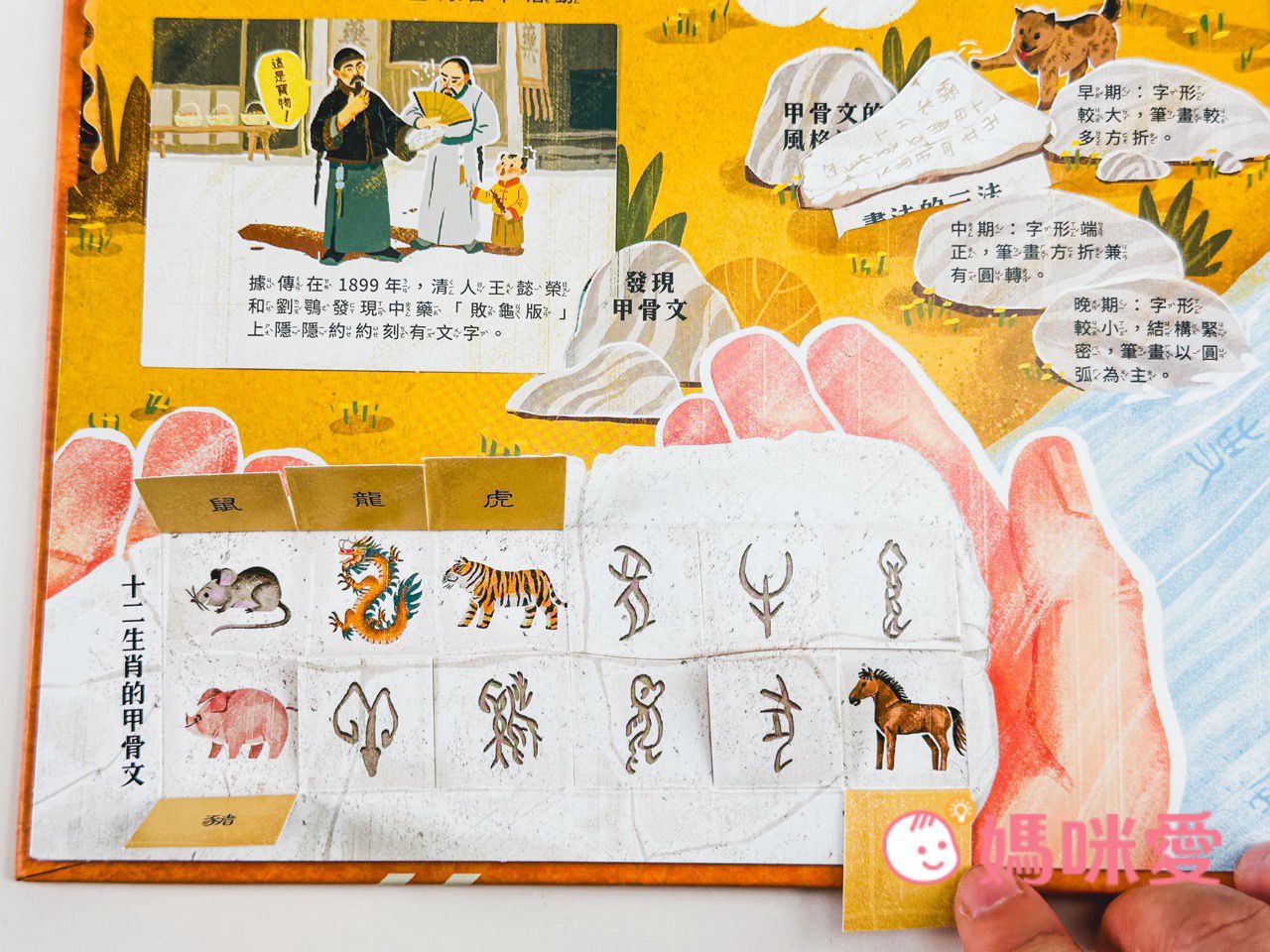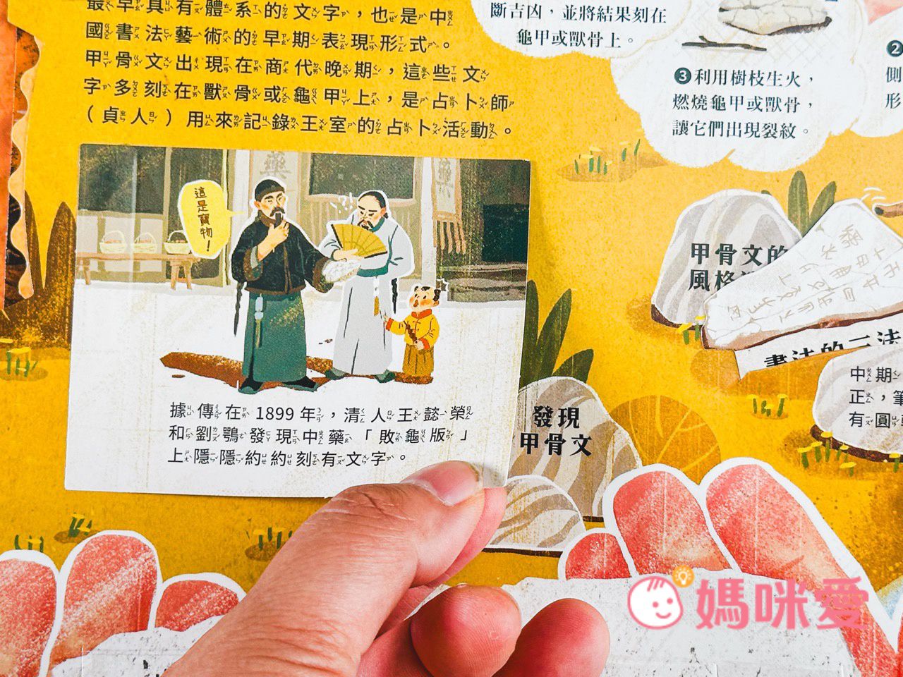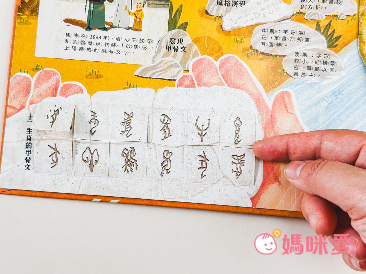 媽咪一看到大龜殼上有刻字,就瞬間聯想到是古老神秘的『甲骨文』,它不僅是目前所知中國最早具有體系的文字,也是中國書法藝術的早期表現形式。