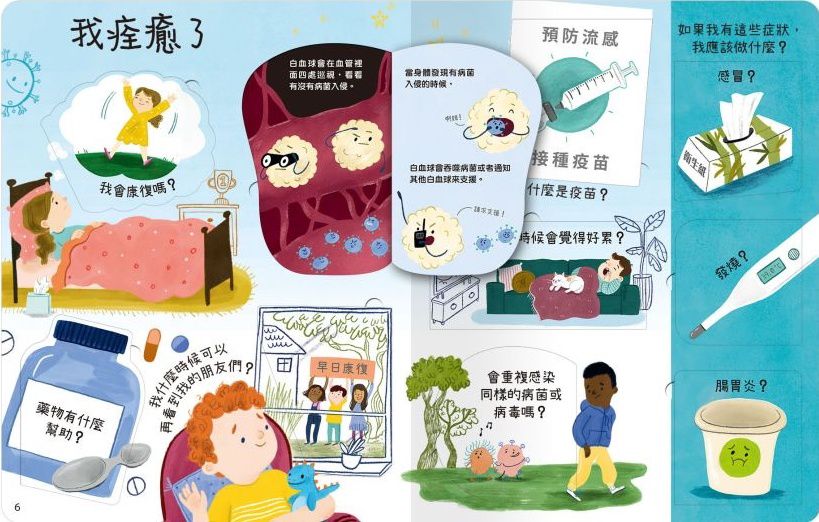 書中插圖的顏色細膩飽滿,繪製多種誘人的食物,不只吸引小朋友閱讀,還能促進食欲,讓人食指大動!此外鮮豔的色彩不僅能輔助視覺的刺激和學習,更能讓小朋友在美麗圖畫的薰陶下,培養藝術創造力。