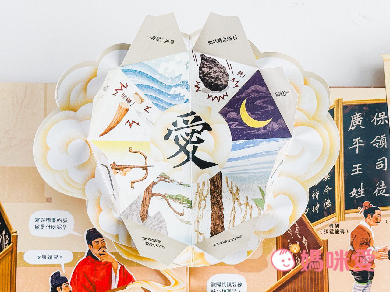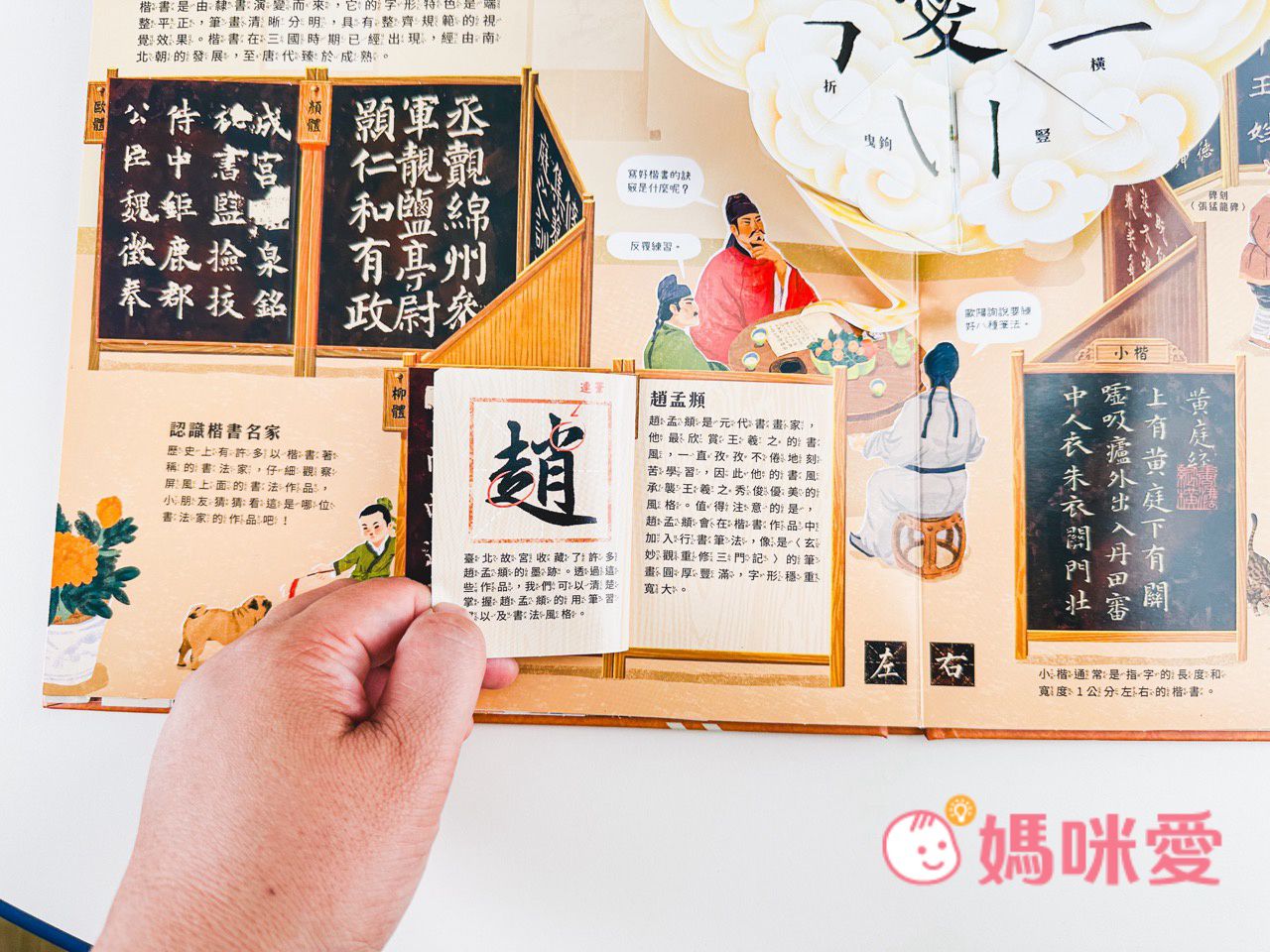 這本書是媽咪我和孩子一起閱讀的。過程中除了機關有趣,還能領略到書法美感、吸收藝術涵養。推薦爸比媽咪入手與孩子們一起感受文字的生命力!