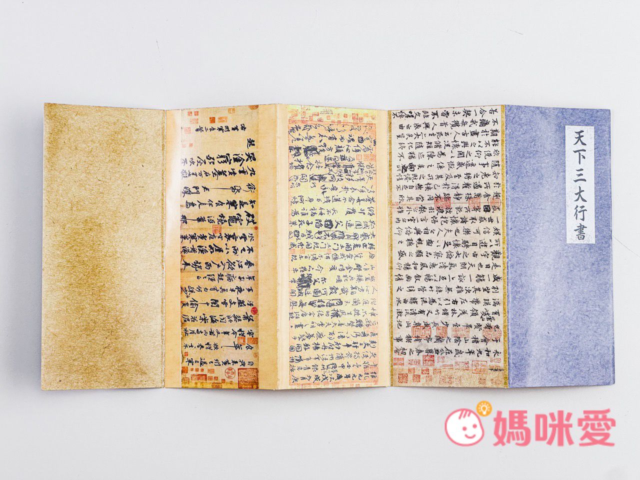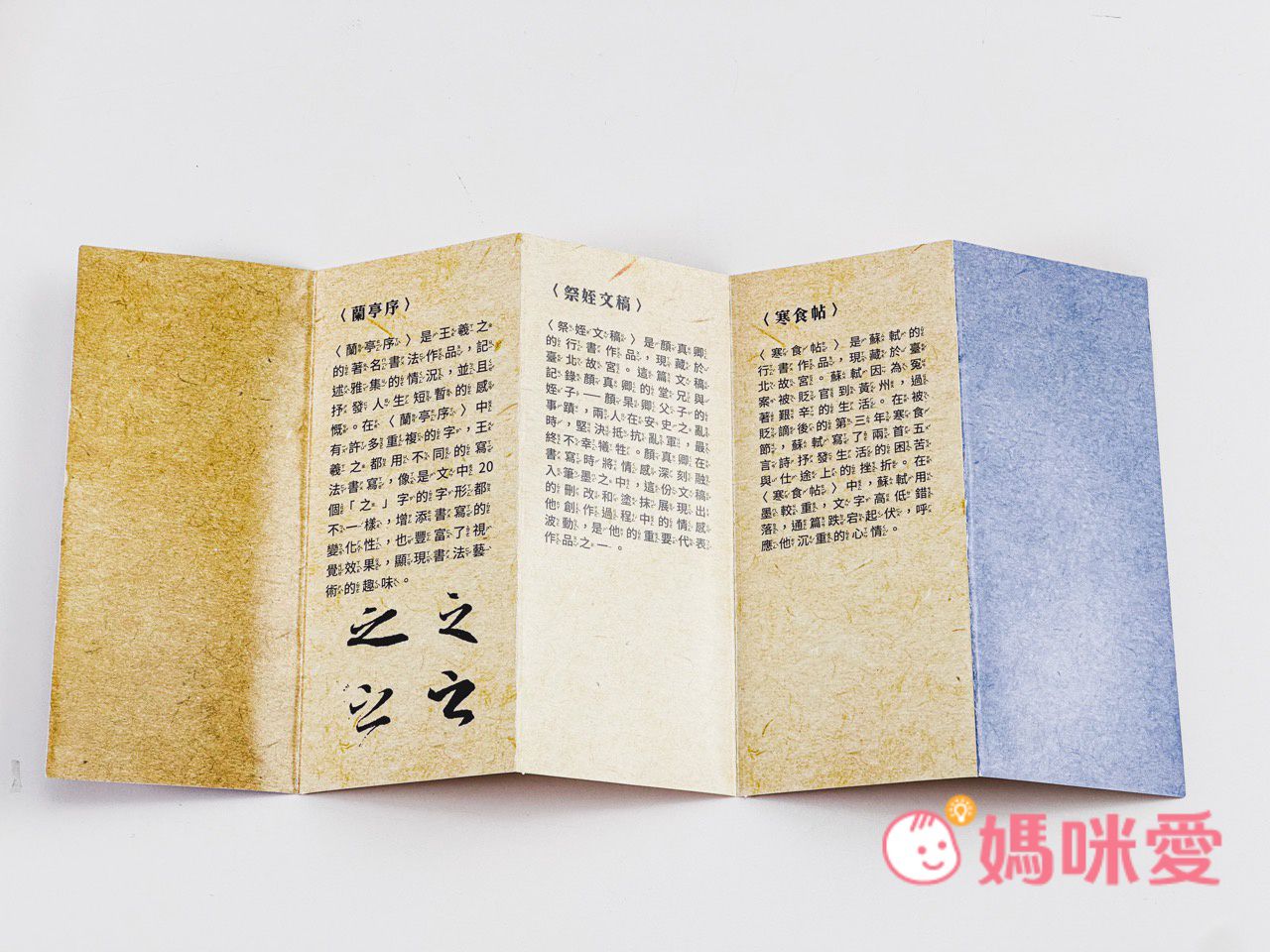 右上角還有一本『天下三大行書』現今傳世的行書作品中,有三件作品具有極高的藝術價值和歷史地位,分別是〈蘭亭序〉〈祭姪文稿〉〈寒食帖〉。