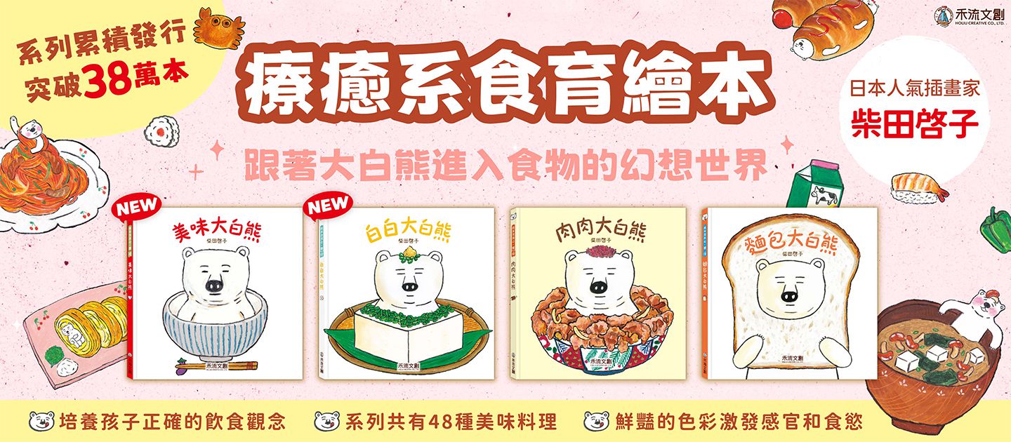 可愛的《麵包大白熊》和《肉肉大白熊》就是一套活潑的啟蒙食育繪本!藉由插畫作家運用細膩飽滿又豐富的色彩,繪製出多種誘人的食物。畫風俏皮又不失細節,食物上的油亮光感,讓人邊閱讀一邊想流口水呢!