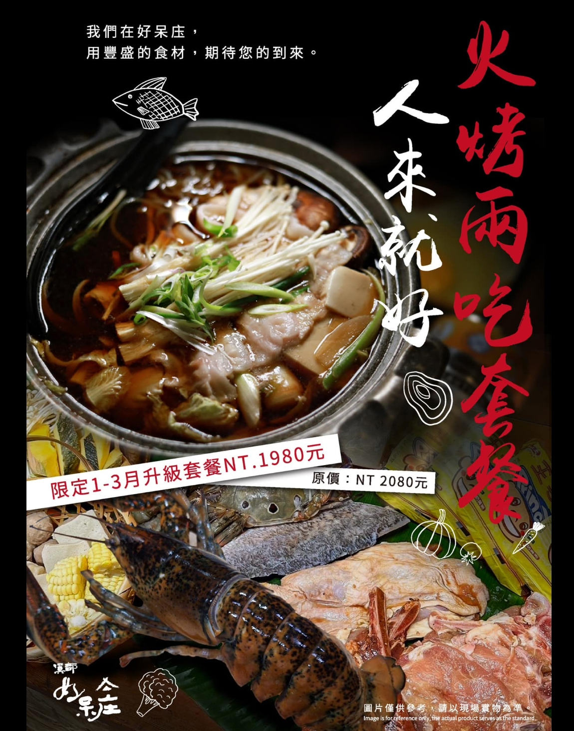 註:住宿可加購自助波士頓龍蝦海陸火烤套餐(原價2080,團購優惠價1880)(¥專案食材不接受任何更換 ¥有素食者,請自行準備)