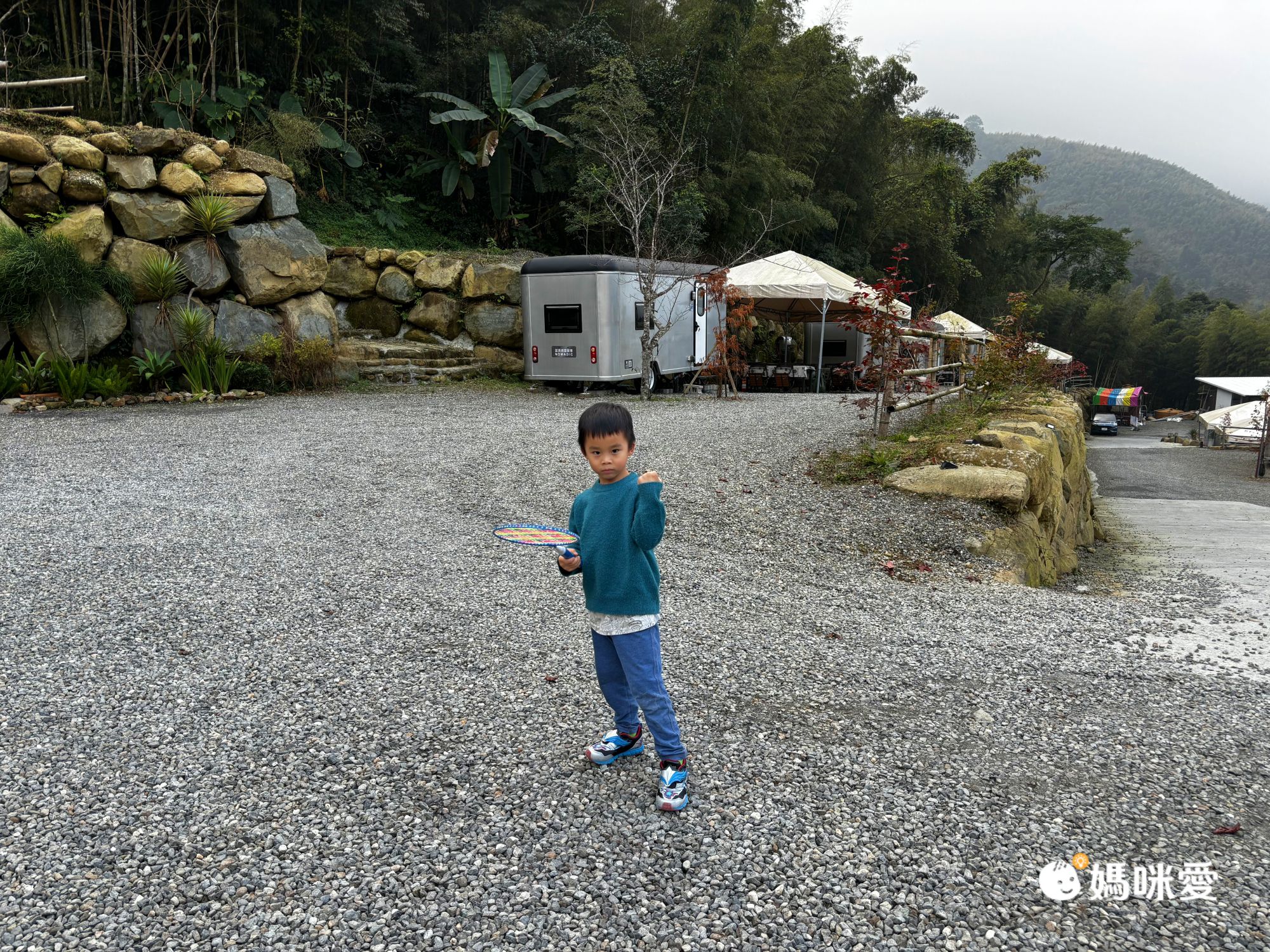 外面公共區域要比較注意的地方除了車子行駛是水泥路外,其餘是舖碎石為主,小朋友比較不宜是跑跳衝刺的活動。如果是帶著小小孩的話,推薦可以入住前區的營位,離親子設施也會比較近一些!
