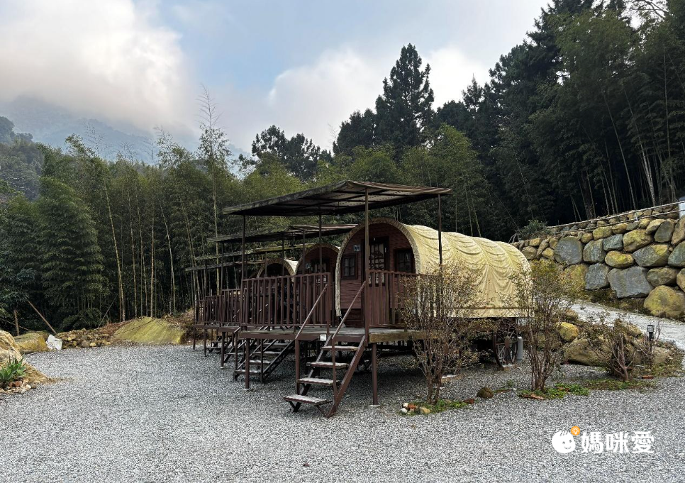後區是竹林區,會相對簡單寧靜一些,有豪華版露營車跟馬車造型露營車可以選擇