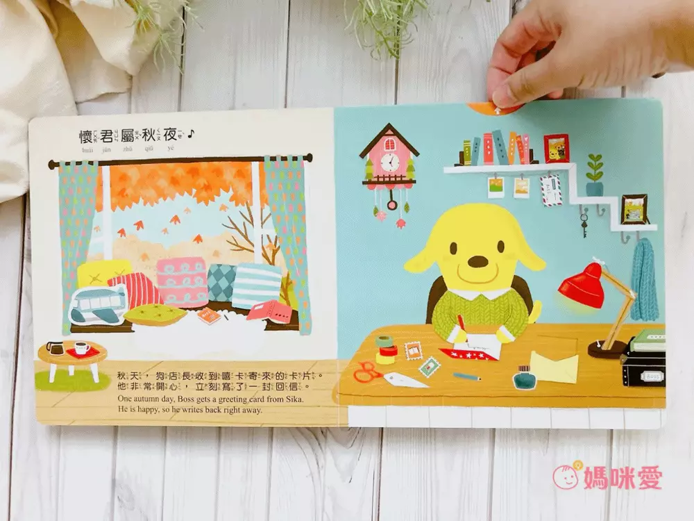 懷君屬秋夜|『秋天,狗店長收到嘻卡寄來的卡片。他非常開心,立刻寫了一封回信。』片片秋葉佈滿在窗前,令媽咪覺得在秋天這個季節實在容易讓人多愁善感呢!
