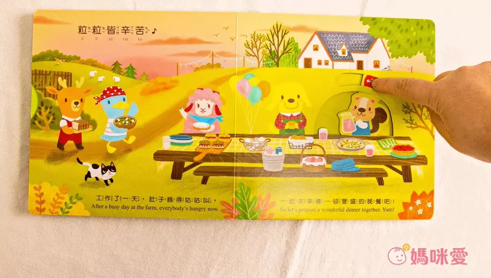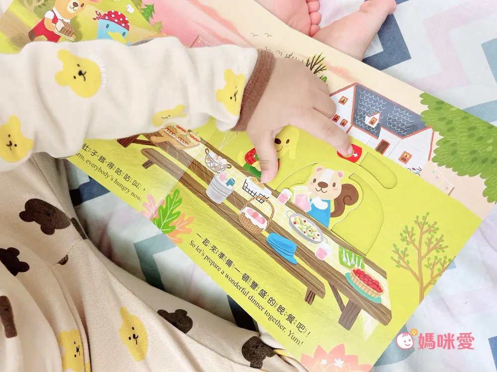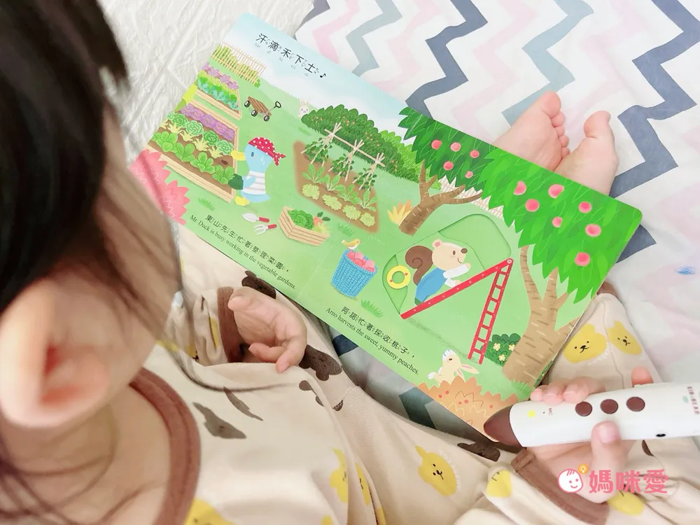 讓媽咪喜愛的特色有『全英文點讀&全文朗讀』、『精美可愛的插圖』、『互動式立體翻頁、遊戲』、『訓練精細動作&手眼協調』、『主題式分類,學習生活化』
