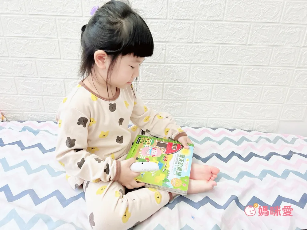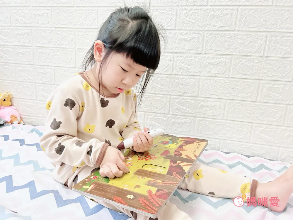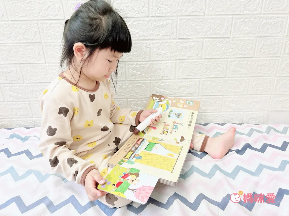 開始前先用點讀筆點封面右下方的圖示後即可開始點讀。每一頁都有對應的插畫與互動機關遊戲。