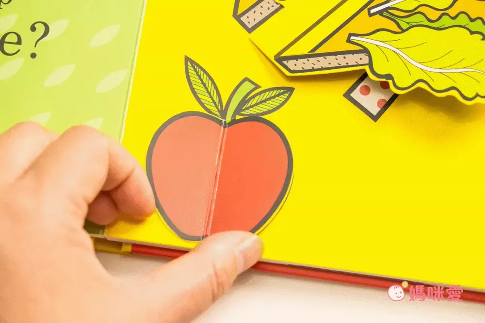 一樣再用點讀筆點選星星符號,挑戰問答遊戲:蘋果裡有幾顆籽?(像這個問題媽咪覺得好厲害,以為蘋果就只能點讀蘋果,裡頭的蘋果“籽”竟然也可以點讀,設計得好細緻呀!)