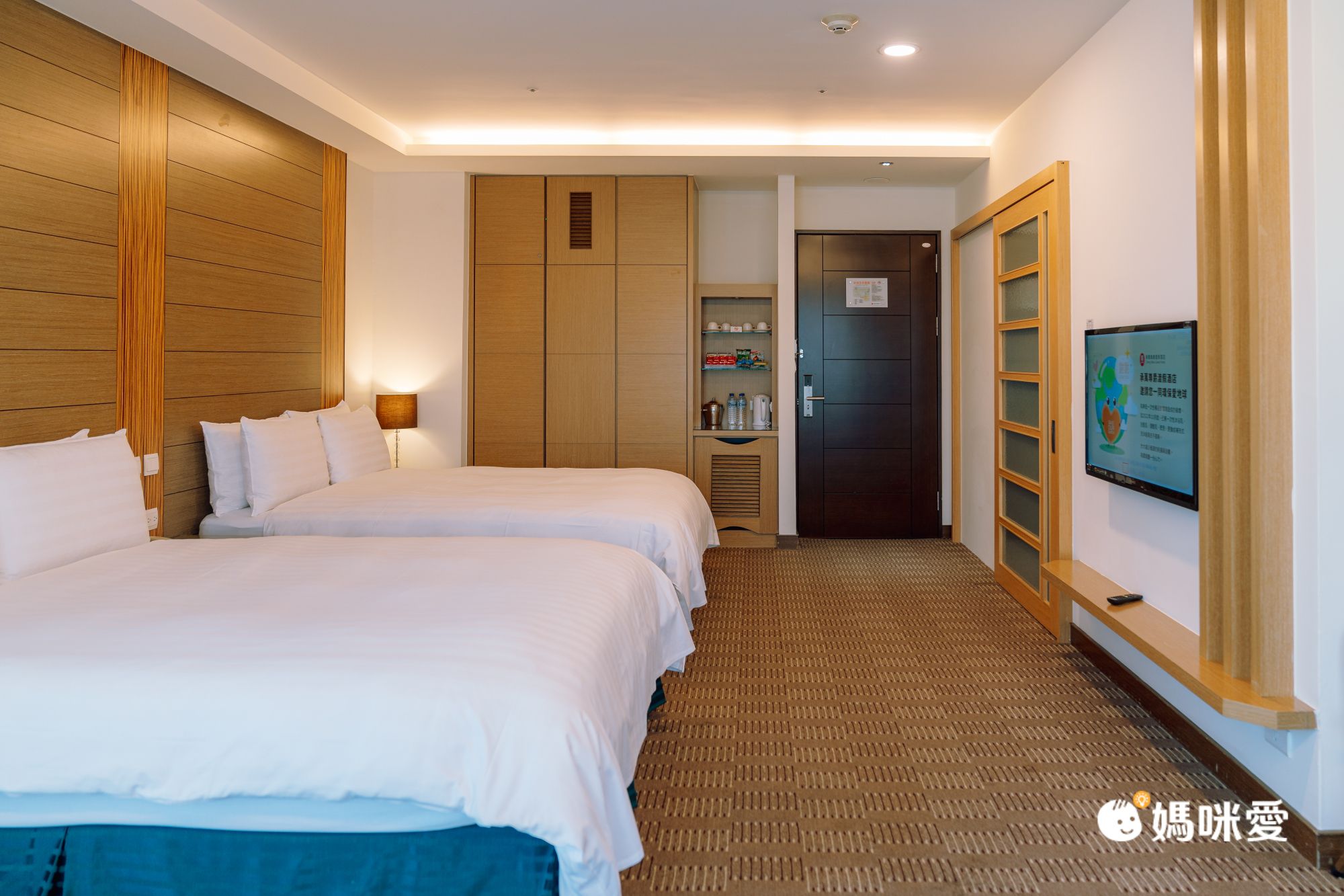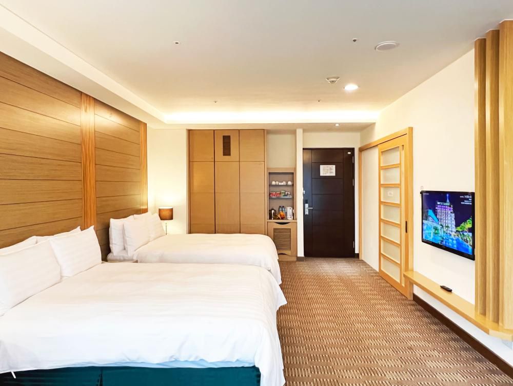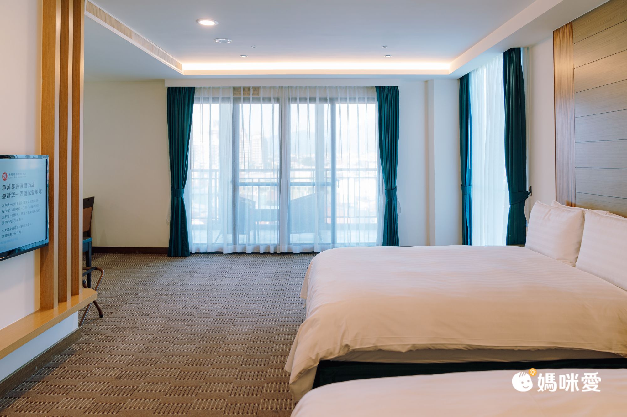 這次我們入住體驗的是時尚四人房喔(專案為麗緻四人房)!三大一小入住,空間超級寬敞,還有很大的陽台,房間落地窗超好拍照,好喜歡陽光落在房裡,我們拍了許多照片,房裡及陽台都看得到遠處得山景,彷彿坐落在山中。