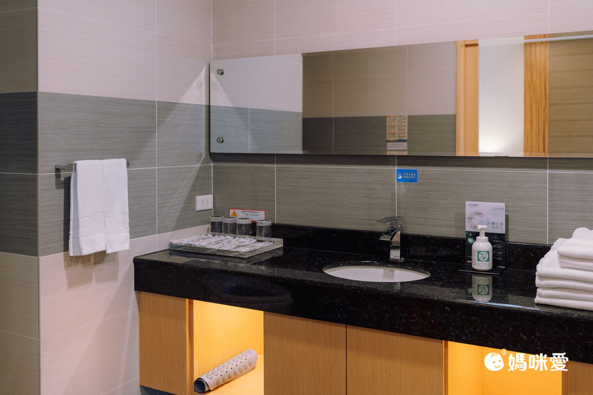 浴室的檯面非常寬敞!就算要多人同時照鏡子都很夠用!