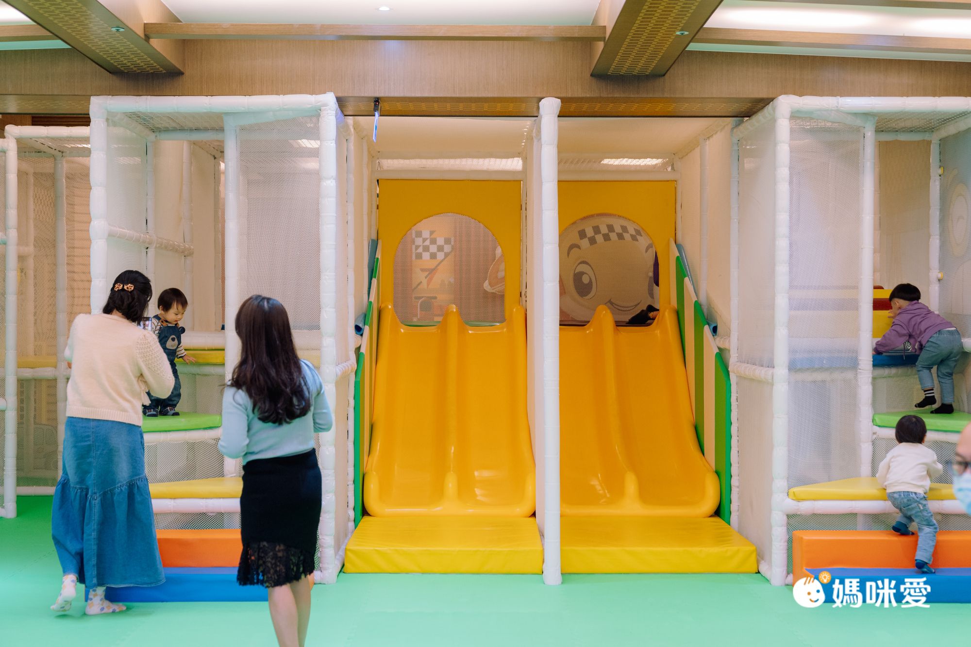 因為遊戲區內空間很大,父母也可以坐在附近看孩子遊戲的狀況,一覽 無遺,,遊戲室也有監視器可以看,十分方便安全且不擁擠呢