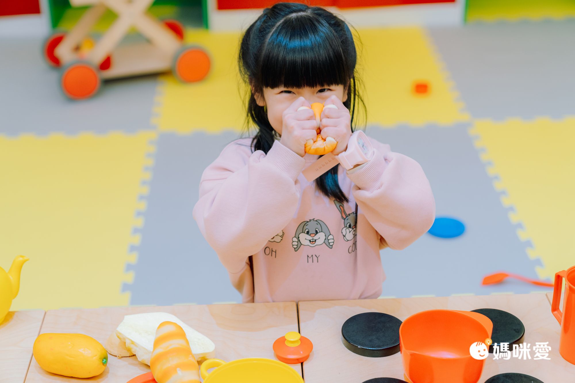 當然Connie最喜歡的是扮家家酒區,她用了一桌下午茶招待我們呢。