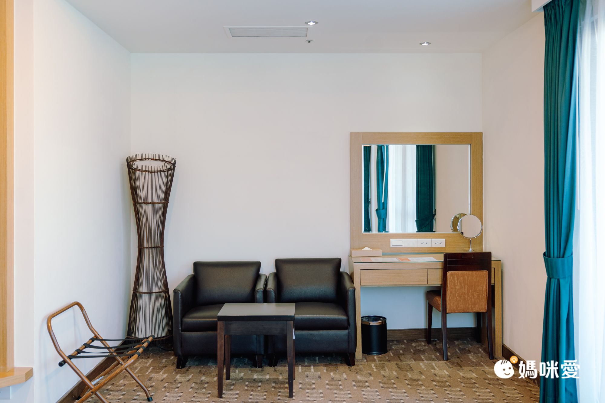 時尚四人房的15坪空間真的超、大、的!甚至休憩區和梳妝台有單獨的一區空間呢!