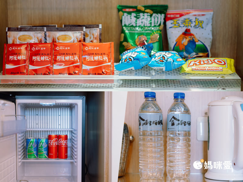 房間裡面內的零食、冰箱的飲料都是免費的,水也是用埔里在地礦泉水呢!