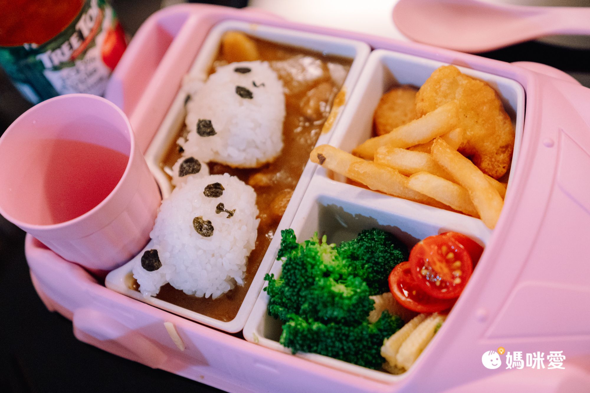 菜單簡單但食物不馬虎,我們點了兒童餐、燉煮牛燴飯、昆布火鍋、當主餐,爸爸說想吃香辣紐澳良雞翅,也非常夠味,最喜歡的是兒童餐,飯是小貓熊,Connie直說捨不得吃它呢,但咖哩飯還是小孩的最愛阿,再搭配薯條跟蘋果汁,對孩子來說分量十分足夠,也不用擔心沒蔬菜,花椰菜也是吃光光喔!