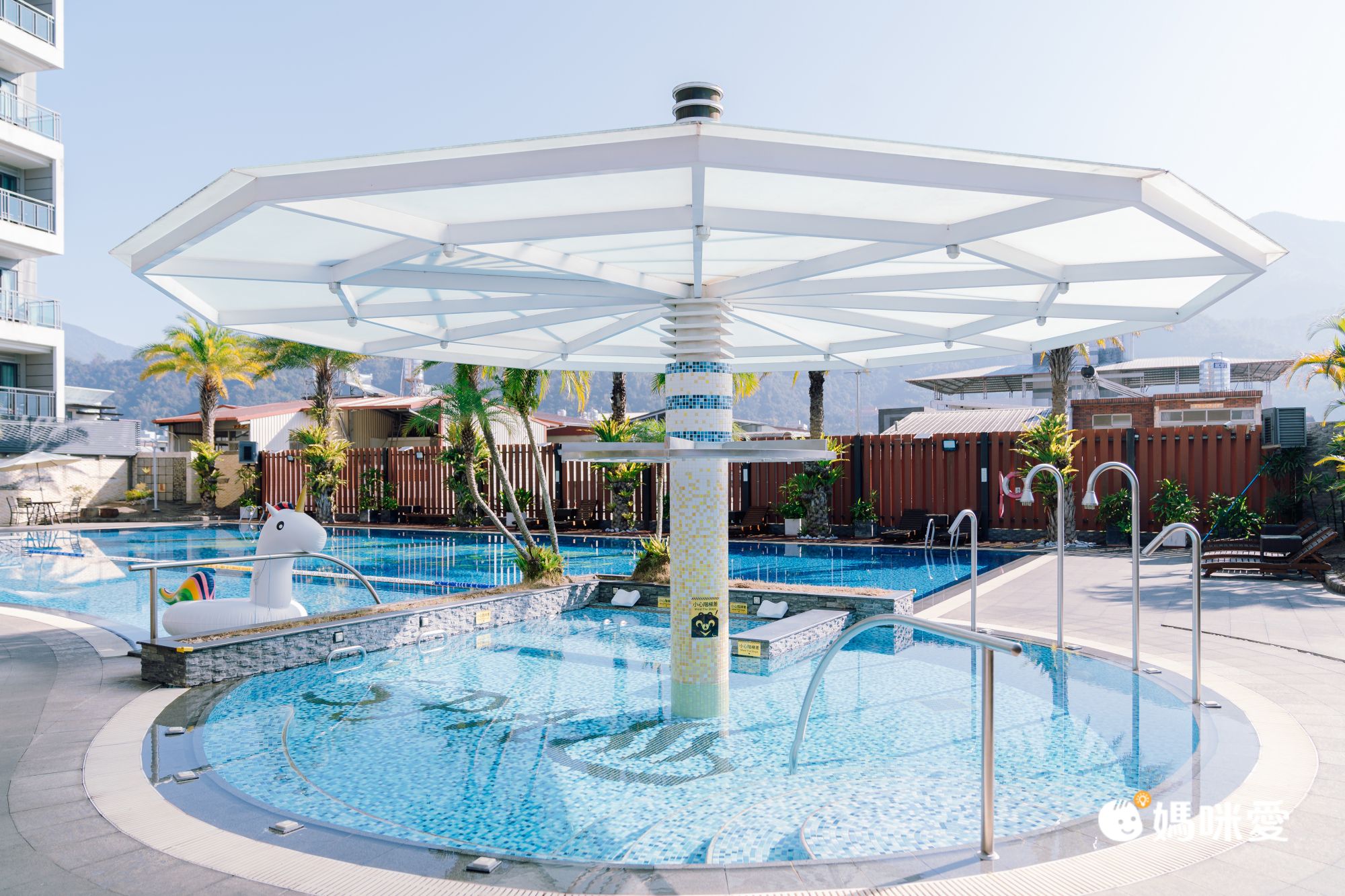 【承萬尊爵渡假酒店】的這座泳池是我們最喜歡的設施,一年四季皆開放喔!充滿南洋的慵懶渡假設計風格、彷彿置身在峇里島,同時規劃兒童泳池、幼兒戲水池,也有規劃SPA水療區、蒸氣室與烤箱設施等