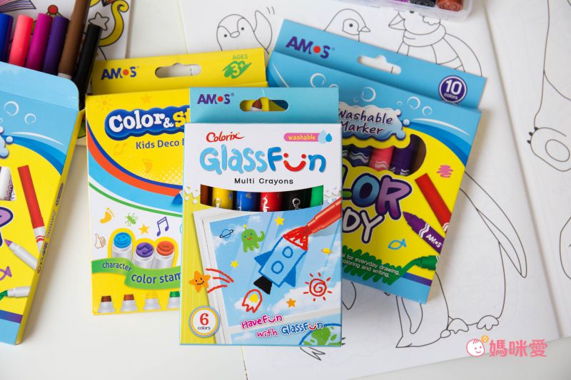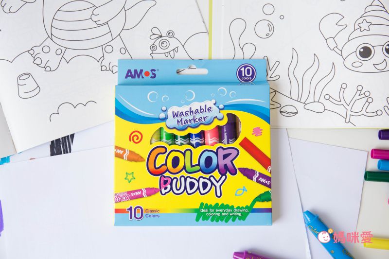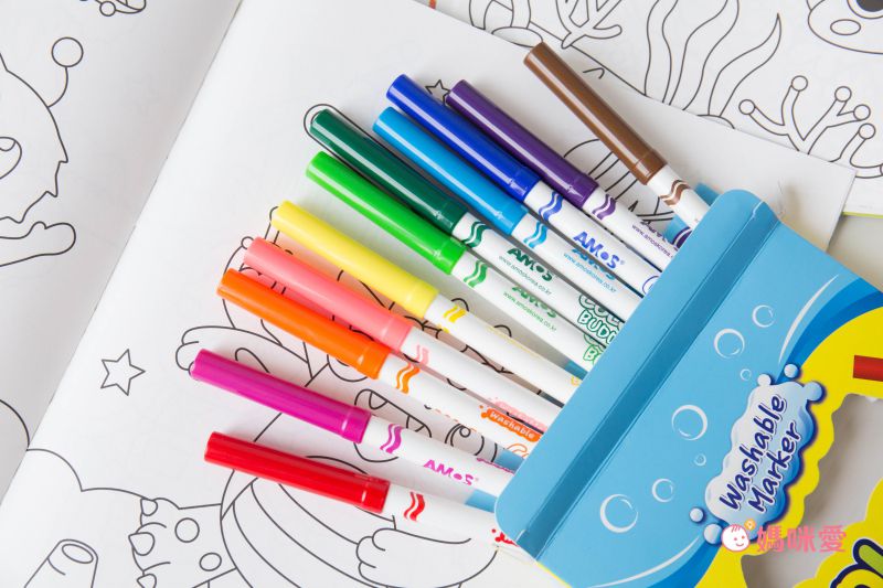 搭配國 AMOS 的可水洗彩色筆、水蠟筆~孩子兩三下就擦乾淨囉^^