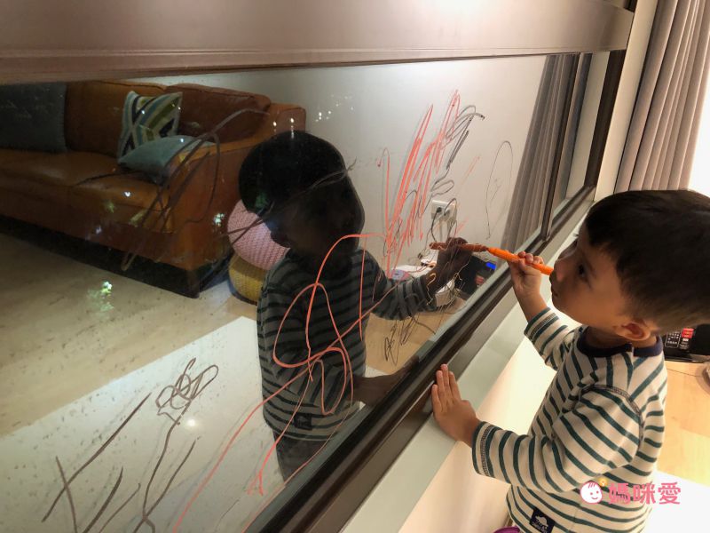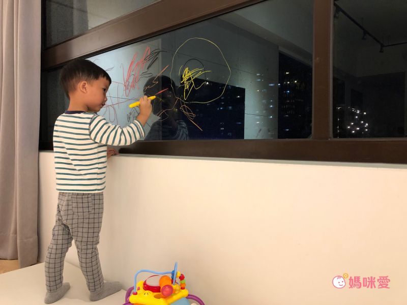 玻璃就是畫畫空間,好洗好擦又不佔空間,媽咪覺得很棒呢!