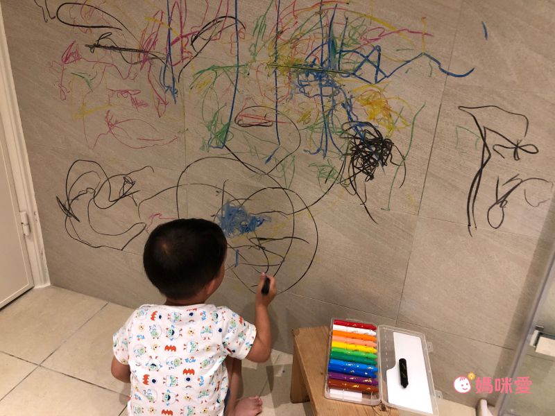 對媽咪來說,AMOS 蠟筆最大的優點是:當然玻璃蠟筆在磁磚也能更顯色,浴室磁磚牆是最好的畫畫空間~對不喜歡洗澡的孩子,就可以用畫筆來吸引他注意(^y^)