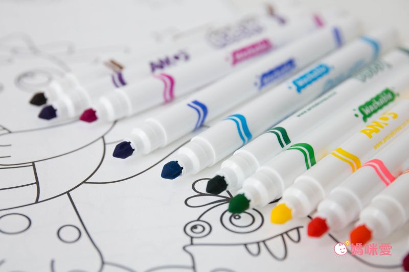 可水洗彩色筆在衣服、皮膚、桌子、地板等大多數表面,一樣能輕鬆洗乾淨~寶貝畫到手上也不擔心啦!