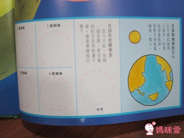 其中一期還教了月球知識~讓孩子動手紀錄月圓、月缺,非常有參與感呢!