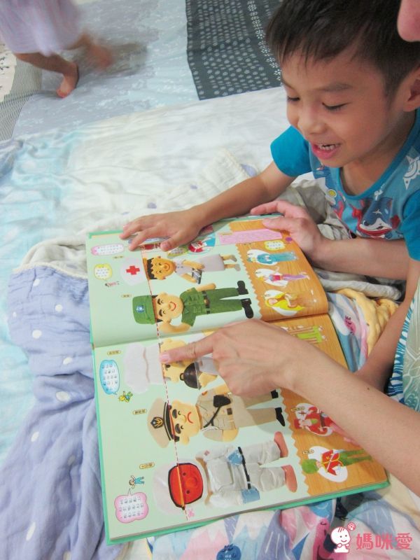 「麻麻, 她們穿得好奇怪喔, 怎麼會這樣阿~?」那我們趕快幫她們穿上正確的服裝吧! 透過翻頁的設計,孩子玩的超開心!每本書的內容都是細緻描寫 “由身邊事物擴充,進而認識整個世界” 的概念。同時也能學習到,每種行業的服裝是怎樣搭配的。