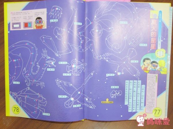 每一頁都不空虛,文字也有注音符號標示,對於已經在學拼音的孩子有很大的幫助!書本還能配合當月贈送的小教材,利用藍紅色的鏡片帶領孩子進入美麗的立體星空~
