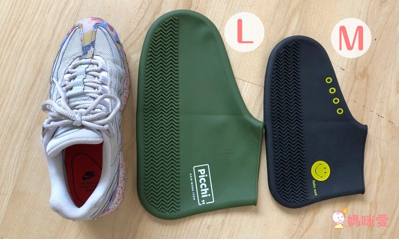 鞋子23.5cm,試了M尺寸(對應尺寸22.5~25.5cm)因為鞋底較厚的緣故,在套上時會比較緊繃,但開口處更為包覆;而L尺寸(對應尺寸26~28cm)雖然比較容易套上,但整體長度還是偏長,開口處也明顯略為寬鬆。