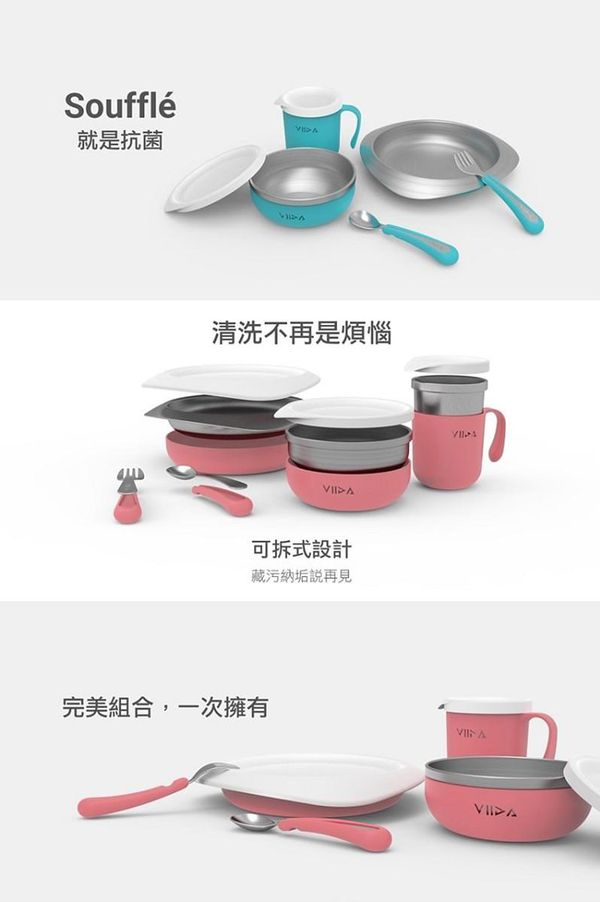 【VIIDA】Soufflé系列首創採用304L抗菌不鏽鋼材質,對大腸桿菌、金黃色葡萄球菌抗菌率達99%以上,它可是比一般不鏽鋼更耐刮、耐蝕、耐酸鹼、穩定性高且更耐用的材質!安全性非常高,特殊的合金技術,讓我們不用擔心小孩不小心吞下塗料層👍