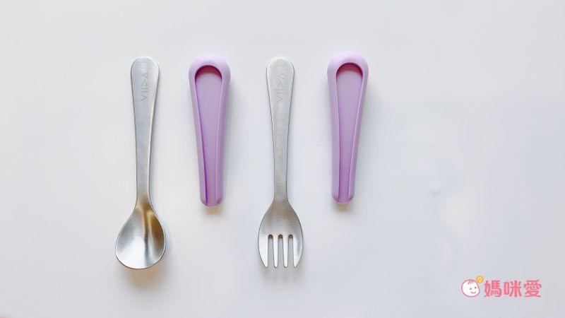 叉匙組胖胖手感,叉匙外襯好握好拿,脫下外襯後也可以當作大人的點心餐具