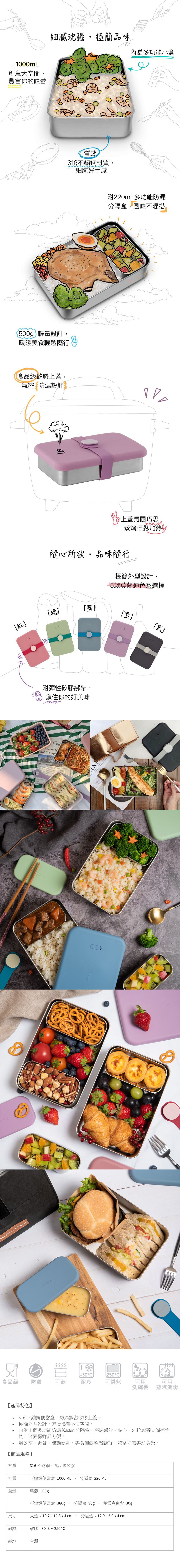 耐熱:PP外襯 -10˚C ~ 110˚C、矽膠上蓋 -30˚C ~ 250˚C、矽膠握柄 -30˚C ~ 250˚C