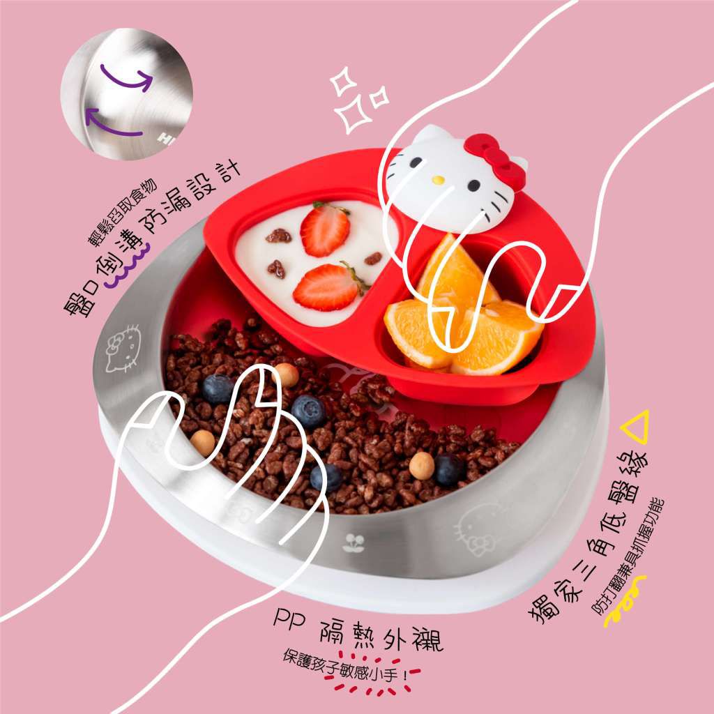 由於金屬易導熱,孩童對於溫度的感覺比大人敏感,所以碗、盤、杯有了可以拆洗的PP外襯,保護寶貝的小胖手。