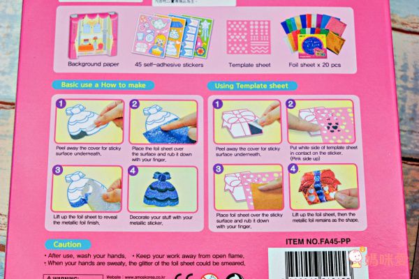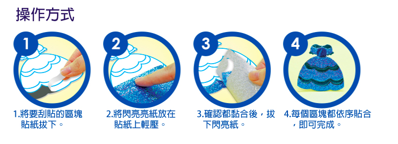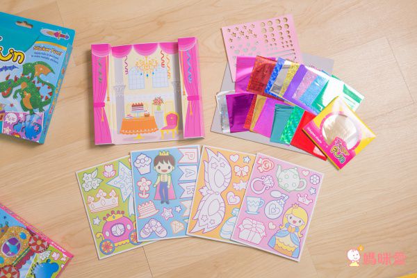 內容物:背景主題、造型刮貼、刮貼花樣模板、閃亮亮紙