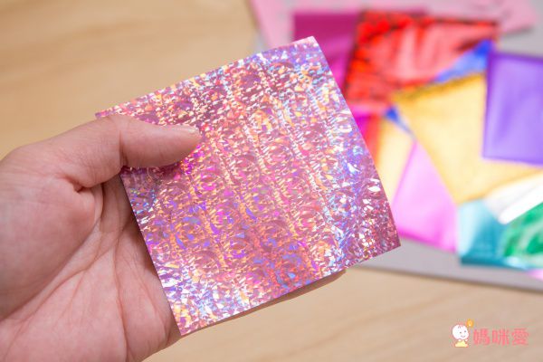 閃亮紙的材質也很好,有不少顏色可以讓孩子自由配色,上面還有不同的花紋呢!