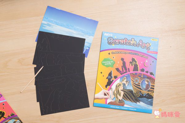 內容物:刮畫紙卡、說故事背景紙卡、刮畫棒