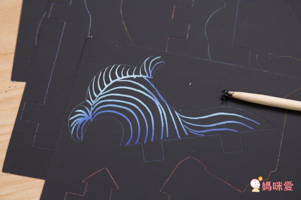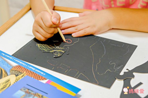 用刮棒進行刮畫可以訓練孩子手部的精細動作,還有線條美感的培養