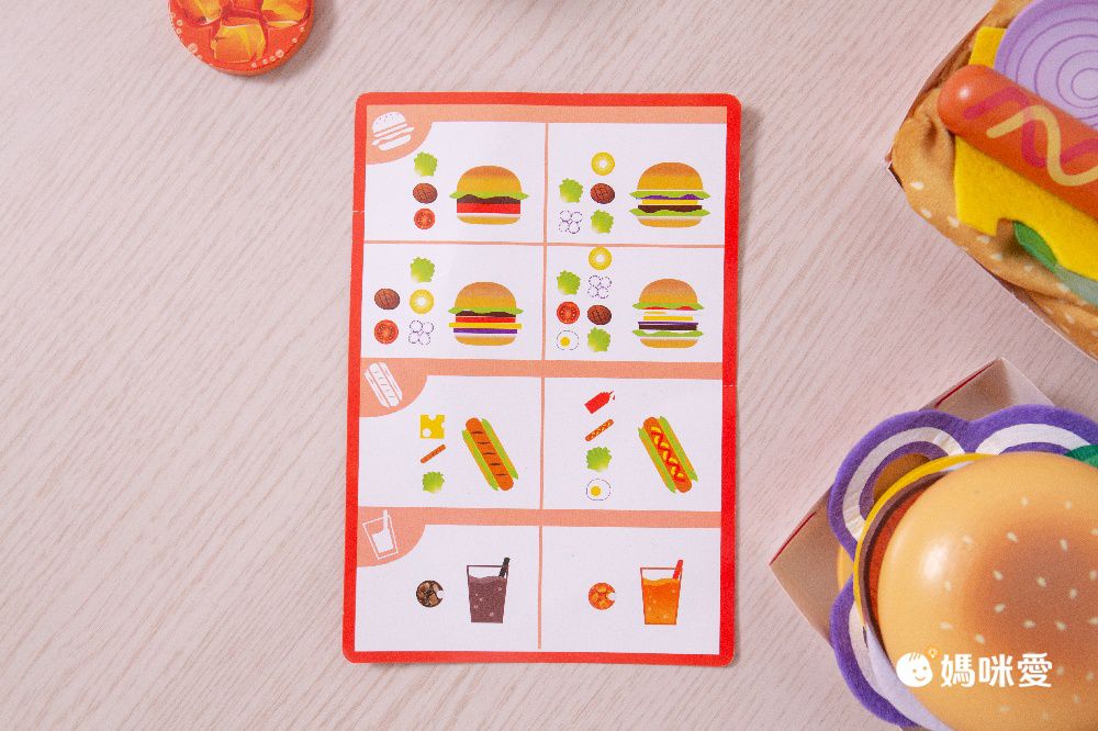 裡面附有一張菜單,感覺也很像是配方表!可以照著上面的配置做,也可以依照自己喜好,發揮創意製作美味堡,當著小小漢堡藝術家!