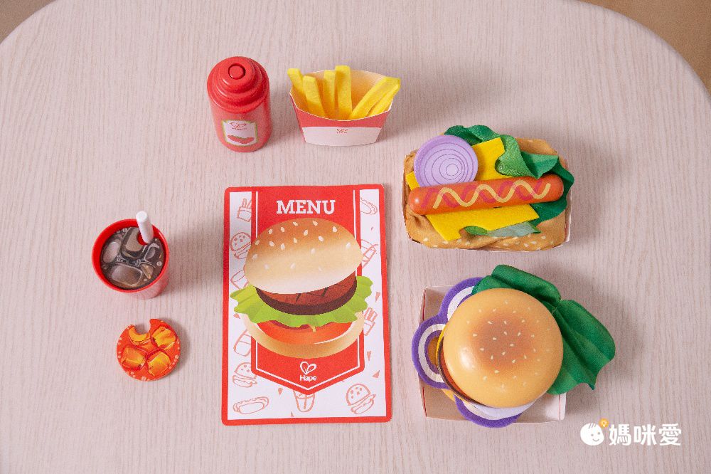 身為漢堡控的編媽我超愛這組的哈哈~一整套漢堡、薯條、番茄醬、飲料的速食全餐!