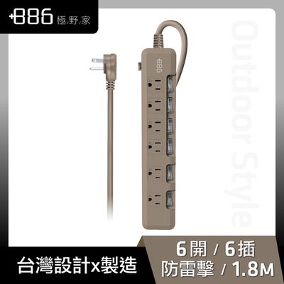 +886 [極野家] - 6開6插過載保護延長線 1.8米 HPS1660-奶茶棕